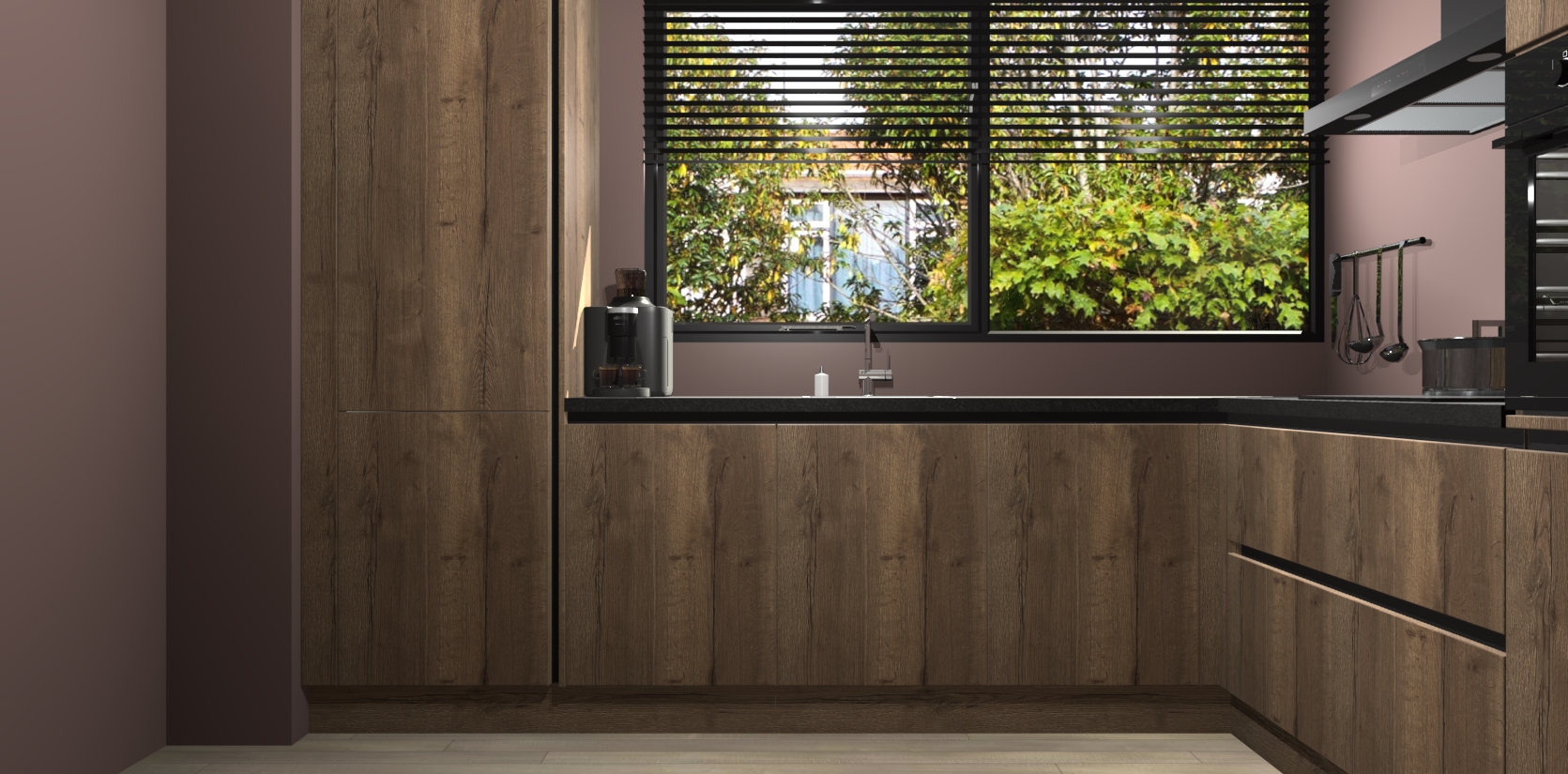 Wij presenteren de revolutie in keukens: de chocolade eiken greeploze keuken Vogar. Met modern design, een tijdloos uiterlijk en kasten die al voor gemonteerd worden geleverd, laat deze stijlvolle keuken uw kookervaring op een hele nieuwe manier transformeren.