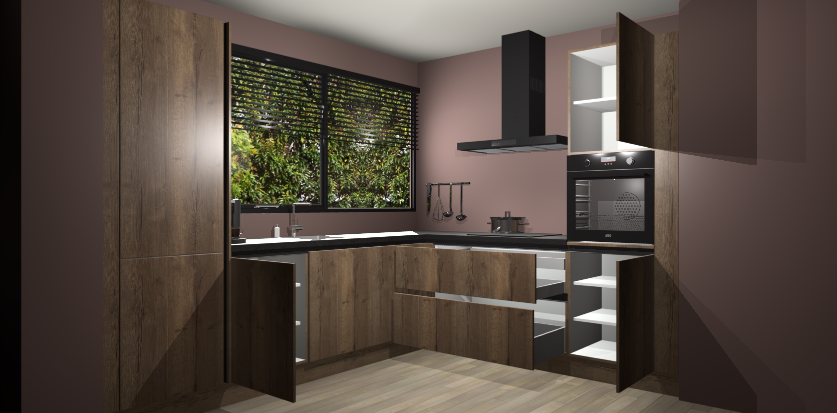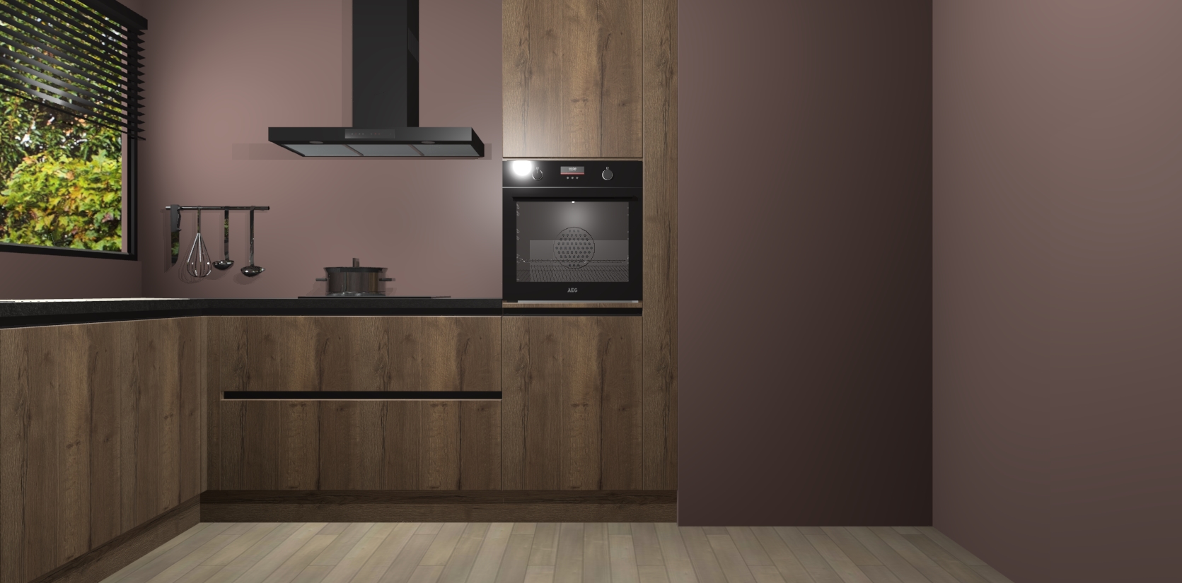 Met een modern, tijdloos design en ruime opslagruimte, zult u zich in no-time thuis voelen in uw nieuwe keuken. Uw leven wordt eenvoudiger met de soft-close deuren die voor het ultieme stille comfort zorgen - geen geluid dat u stoort terwijl u kookt. Ook is de keuken voorzien van 5 ingebouwde apparaten: een oven, inductie kookplaat, afzuigkap, vaatwasser en koelkast. Deze kunnen gemakkelijk na bestelling worden bijgewerkt naar AEG - waardoor uw luxe ervaring compleet is.