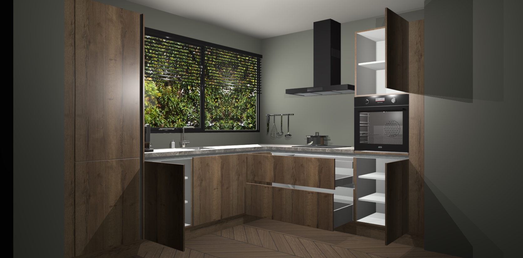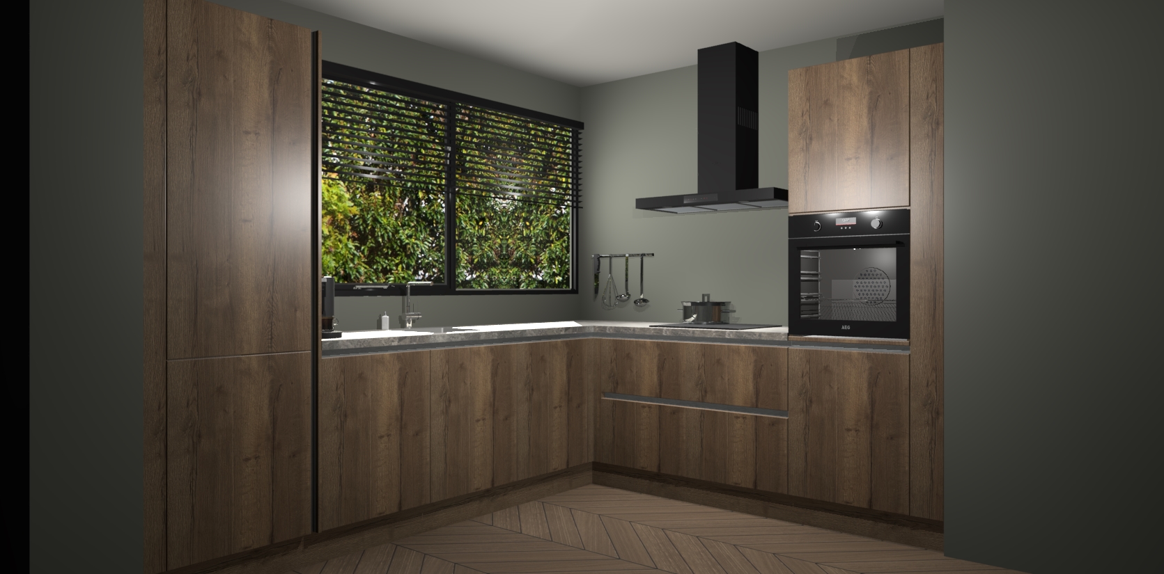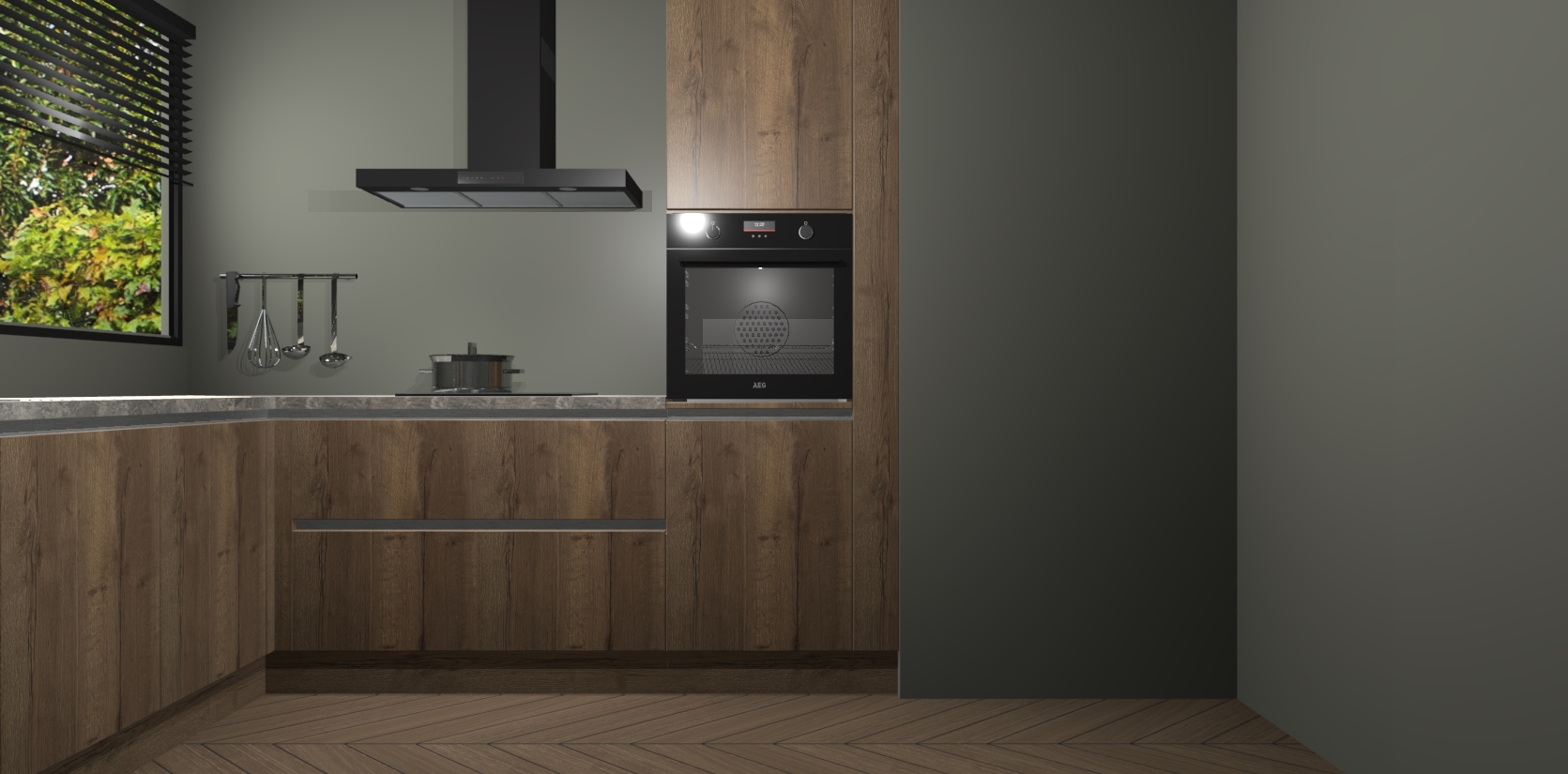 Met een modern, tijdloos design en ruime opslagruimte, zult u zich in no-time thuis voelen in uw nieuwe keuken. Uw leven wordt eenvoudiger met de soft-close deuren die voor het ultieme stille comfort zorgen - geen geluid dat u stoort terwijl u kookt. Ook is de keuken voorzien van 5 ingebouwde apparaten: een oven, inductie kookplaat, afzuigkap, vaatwasser en koelkast. Deze kunnen gemakkelijk na bestelling worden bijgewerkt naar AEG - waardoor uw luxe ervaring compleet is.