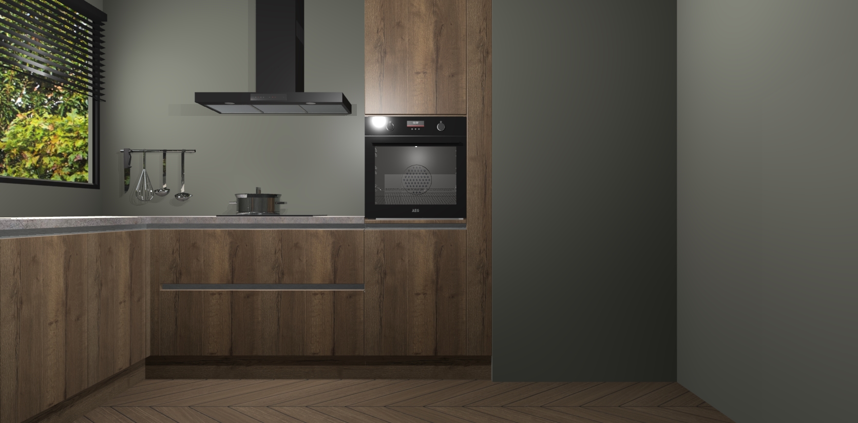 Met een modern, tijdloos design en ruime opslagruimte, zult u zich in no-time thuis voelen in uw nieuwe keuken. Uw leven wordt eenvoudiger met de soft-close deuren die voor het ultieme stille comfort zorgen - geen geluid dat u stoort terwijl u kookt. Ook is de keuken voorzien van 5 ingebouwde apparaten: een oven, inductie kookplaat, afzuigkap, vaatwasser en koelkast. Deze kunnen gemakkelijk na bestelling worden bijgewerkt naar AEG - waardoor uw luxe ervaring compleet is.