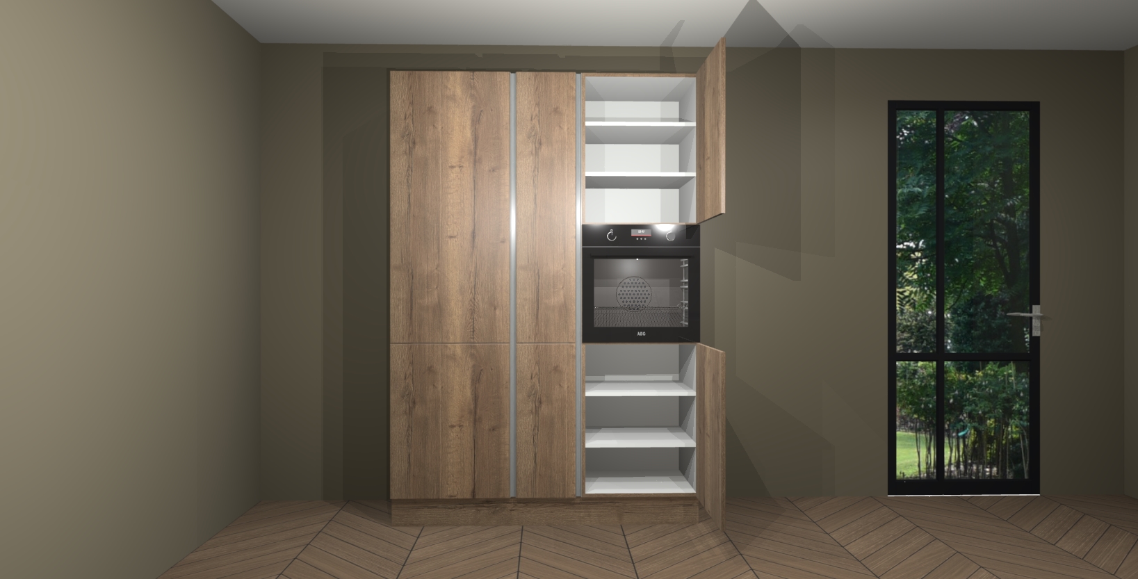 Met een modern, tijdloos design en ruime opslagruimte, zult u zich in no-time thuis voelen in uw nieuwe keuken. Uw leven wordt eenvoudiger met de soft-close deuren die voor het ultieme stille comfort zorgen - geen geluid dat u stoort terwijl u kookt. Ook is de keuken voorzien van 5 ingebouwde apparaten: een oven, inductie kookplaat, afzuigkap, vaatwasser en koelkast. Deze kunnen gemakkelijk na bestelling worden bijgewerkt naar AEG - waardoor uw luxe ervaring compleet is.