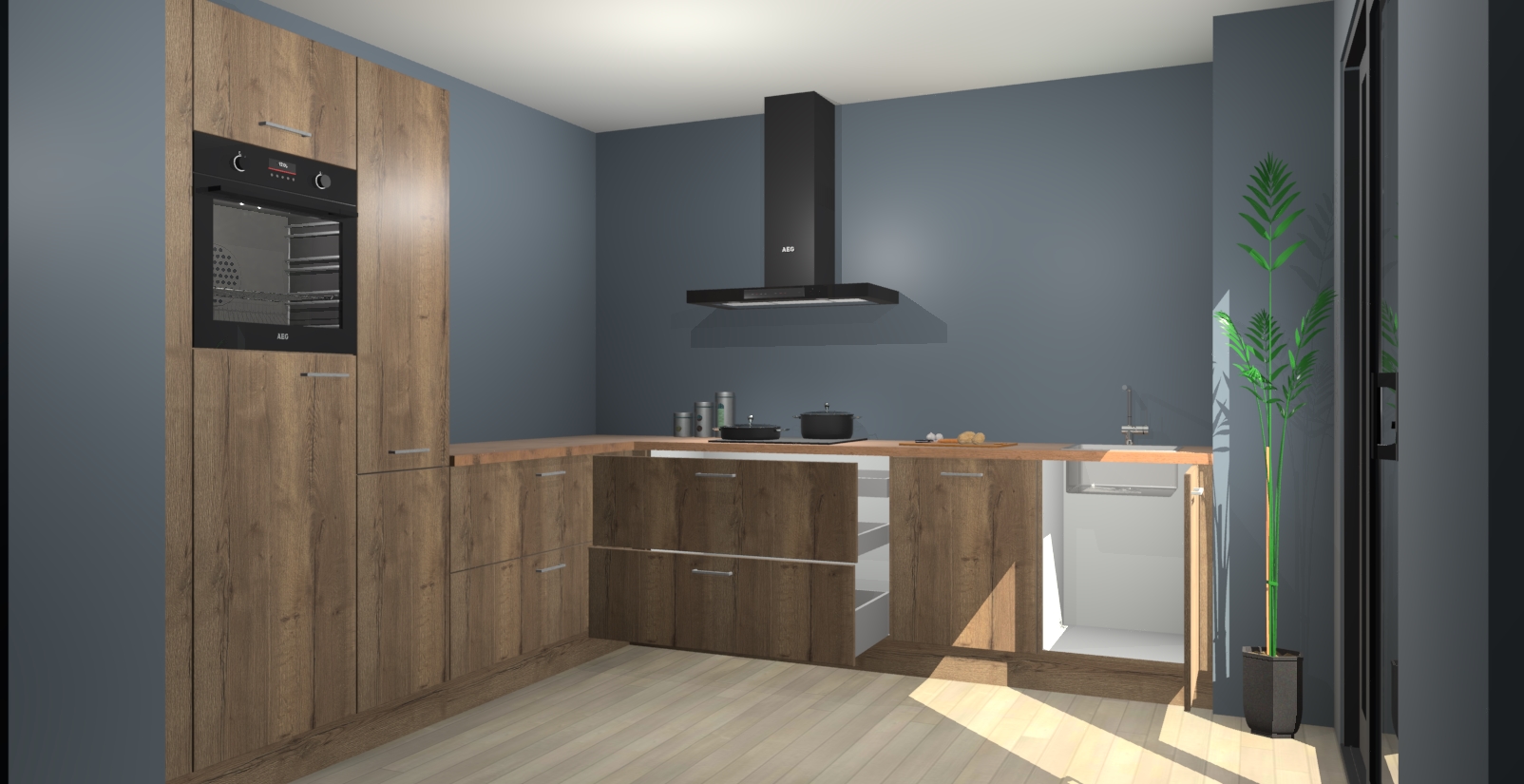 Laat u verrassen door de nieuwste en meest innovatieve keuken van dit moment: De Chocolade Eiken keuken Antibes. Deze chique keuken straalt een stijlvolle sfeer uit die zeker bewondering zal oogsten bij uw gasten. Als u op zoek bent naar voldoende opbergruimte voor al uw keukengadgets en -gerei, dan is dit de perfecte oplossing. Met ingebouwde apparatuur zoals een oven, inductiekookplaat, afzuigkap, vaatwasser en koelkast! U krijgt niet alleen veel opbergruimte, maar ook een betrouwbaar soft close-deursysteem dat ervoor zorgt dat er nooit meer kastdeuren dichtslaan!