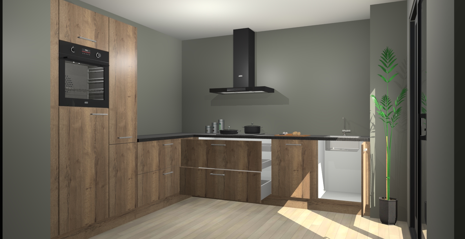 Laat u verrassen door de nieuwste en meest innovatieve keuken van dit moment: De Chocolade Eiken keuken Antibes. Deze chique keuken straalt een stijlvolle sfeer uit die zeker bewondering zal oogsten bij uw gasten. Als u op zoek bent naar voldoende opbergruimte voor al uw keukengadgets en -gerei, dan is dit de perfecte oplossing. Met ingebouwde apparatuur zoals een oven, inductiekookplaat, afzuigkap, vaatwasser en koelkast! U krijgt niet alleen veel opbergruimte, maar ook een betrouwbaar soft close-deursysteem dat ervoor zorgt dat er nooit meer kastdeuren dichtslaan!