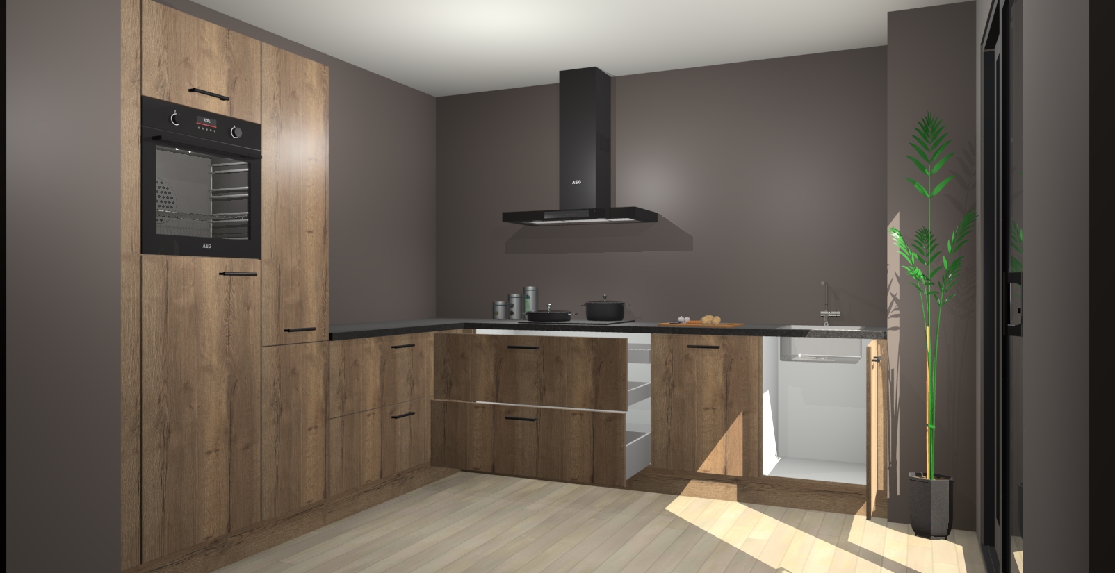 Laat u verrassen door de nieuwste en meest innovatieve keuken van dit moment: De Chocolade Eiken keuken Antibes. Deze chique keuken straalt een stijlvolle sfeer uit die zeker bewondering zal oogsten bij uw gasten. Als u op zoek bent naar voldoende opbergruimte voor al uw keukengadgets en -gerei, dan is dit de perfecte oplossing. Met ingebouwde apparatuur zoals een oven, inductiekookplaat, afzuigkap, vaatwasser en koelkast! U krijgt niet alleen veel opbergruimte, maar ook een betrouwbaar soft close-deursysteem dat ervoor zorgt dat er nooit meer kastdeuren dichtslaan!