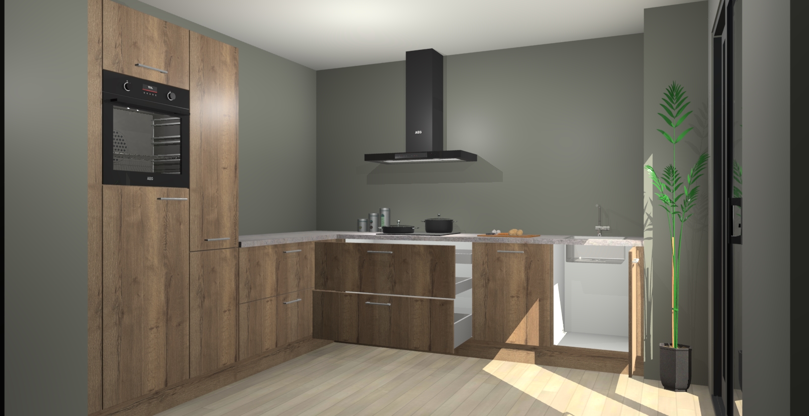 Laat u verrassen door de nieuwste en meest innovatieve keuken van dit moment: De Chocolade Eiken keuken Antibes. Deze chique keuken straalt een stijlvolle sfeer uit die zeker bewondering zal oogsten bij uw gasten. Als u op zoek bent naar voldoende opbergruimte voor al uw keukengadgets en -gerei, dan is dit de perfecte oplossing. Met ingebouwde apparatuur zoals een oven, inductiekookplaat, afzuigkap, vaatwasser en koelkast! U krijgt niet alleen veel opbergruimte, maar ook een betrouwbaar soft close-deursysteem dat ervoor zorgt dat er nooit meer kastdeuren dichtslaan!