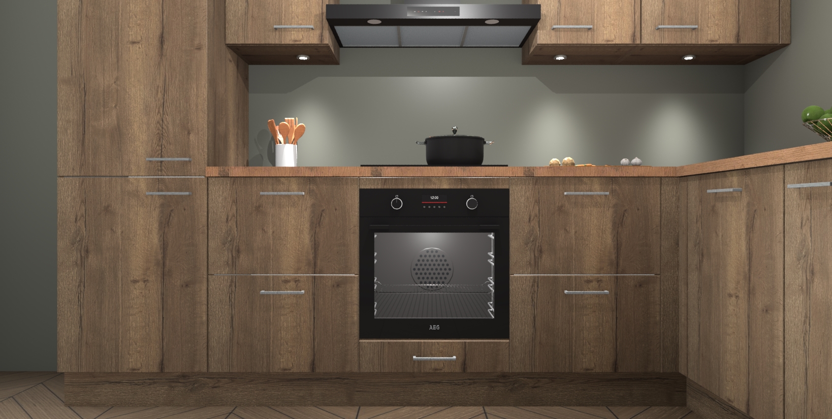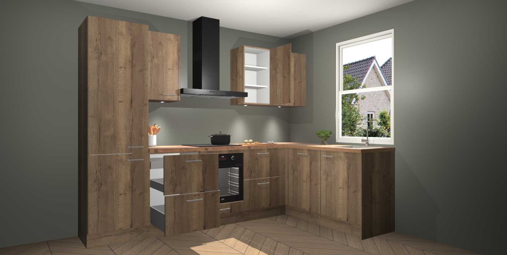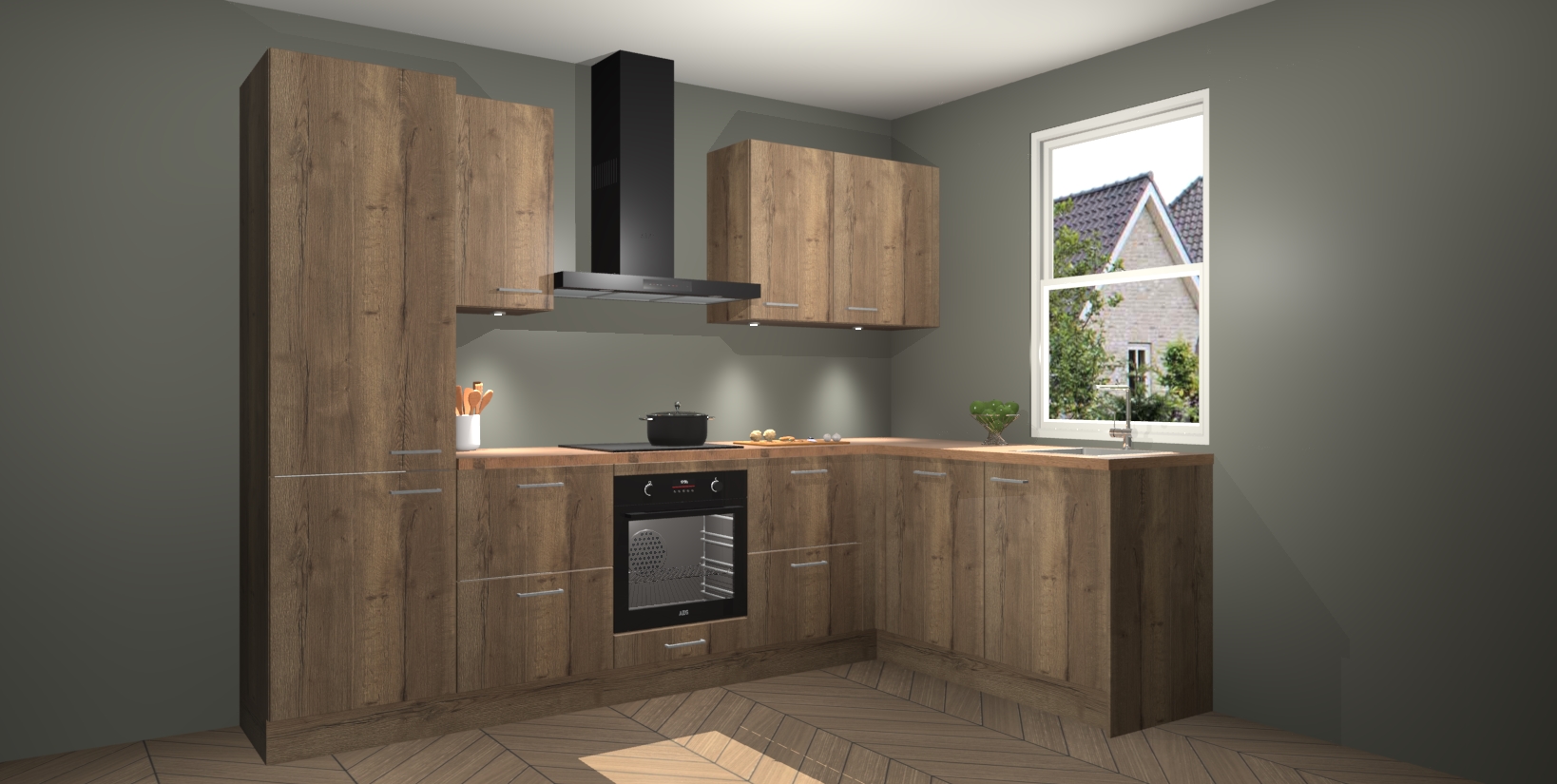 Maak kennis met de trendsettende en luxe Chocolade Eiken keuken Bazel! Deze uitzonderlijke keuken van Duitse kwaliteit is stijlvol, modern en perfect om elk huis mee op te fleuren. De binnenkant van de kasten worden meegenomen in een bijpassende kleur om een samenhangende eigentijdse esthetiek te voltooien. U zult dol zijn op hoe uw pas gerenoveerde keuken eruitziet met de Chocolade Eiken editie!