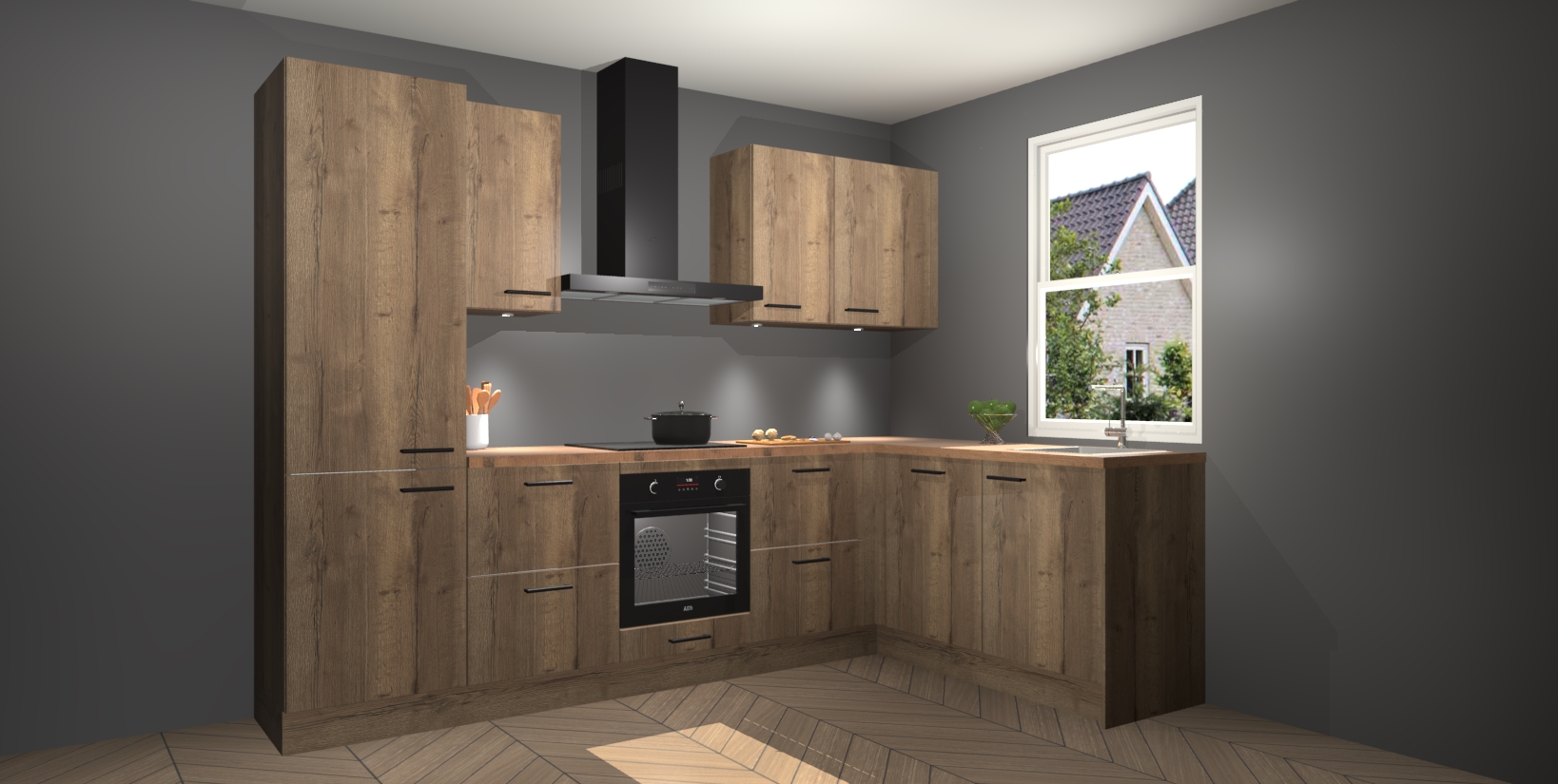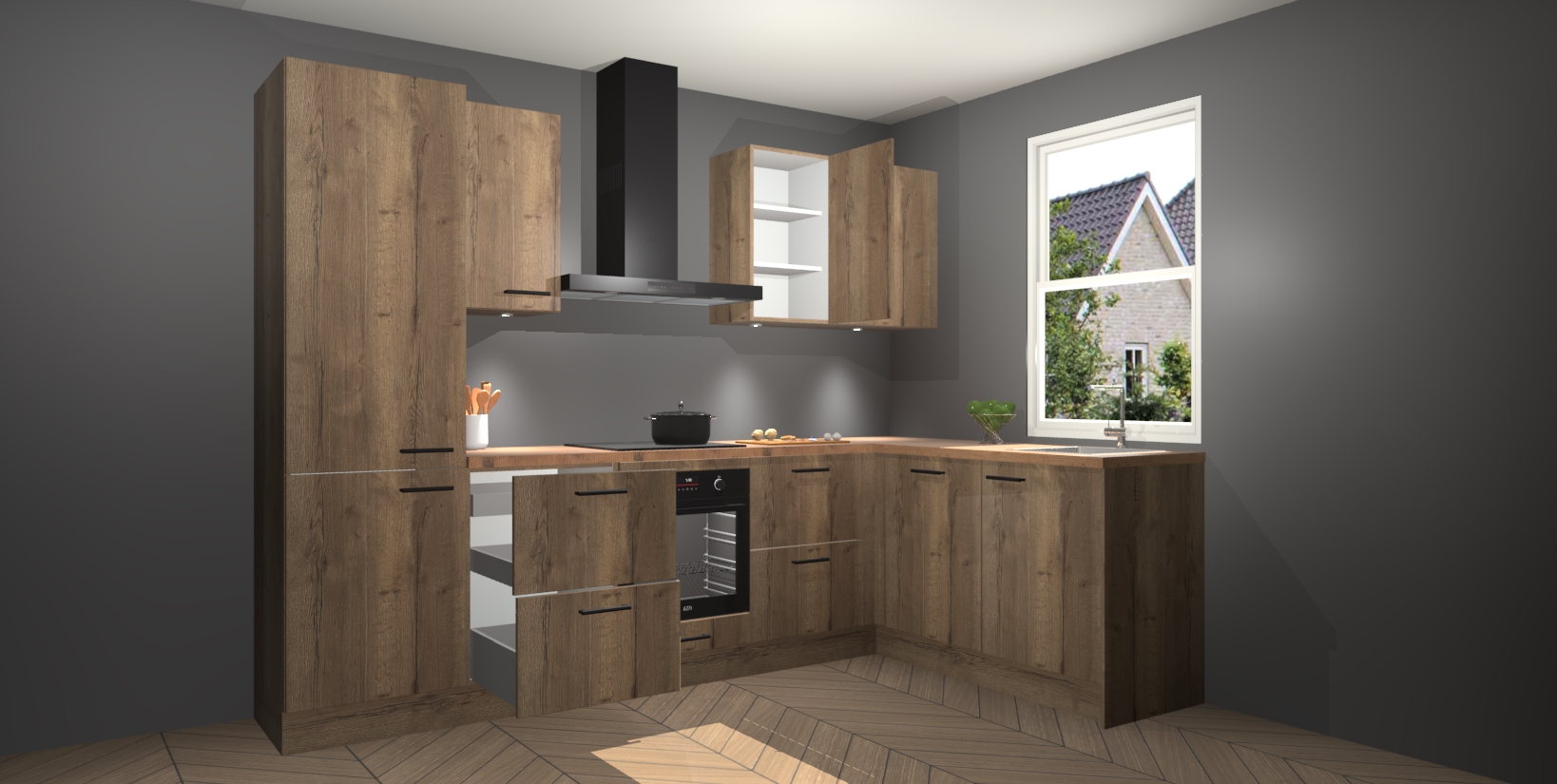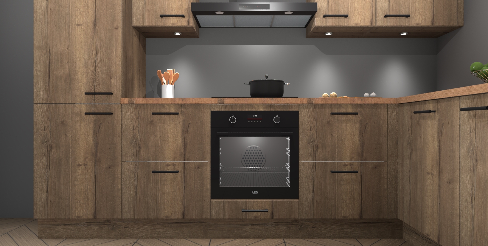 Maak kennis met de trendsettende en luxe Chocolade Eiken keuken Bazel! Deze uitzonderlijke keuken van Duitse kwaliteit is stijlvol, modern en perfect om elk huis mee op te fleuren. De binnenkant van de kasten worden meegenomen in een bijpassende kleur om een samenhangende eigentijdse esthetiek te voltooien. U zult dol zijn op hoe uw pas gerenoveerde keuken eruitziet met de Chocolade Eiken editie!