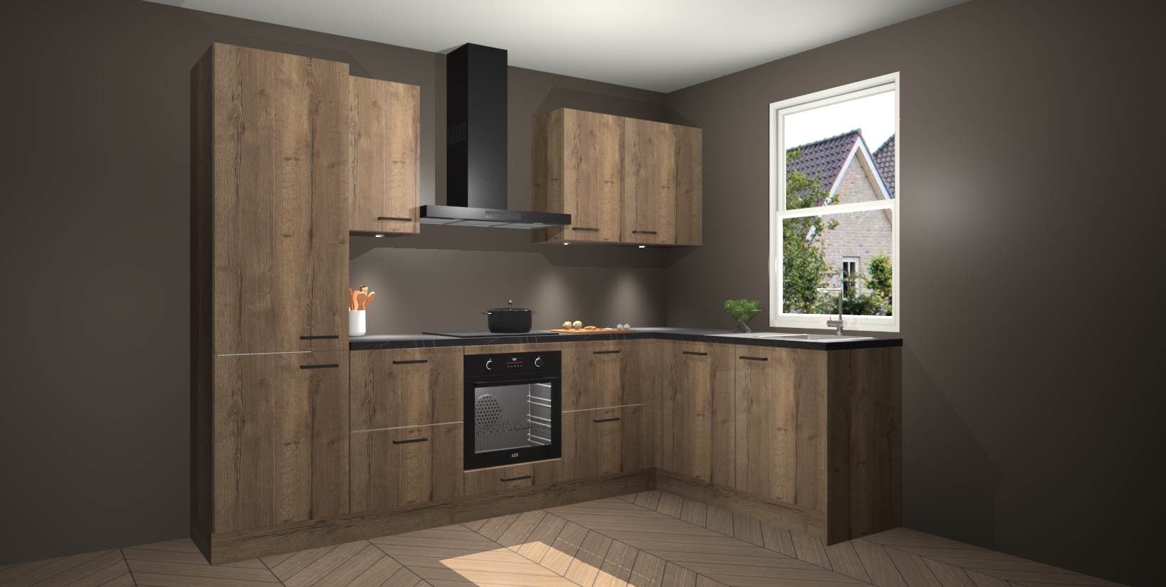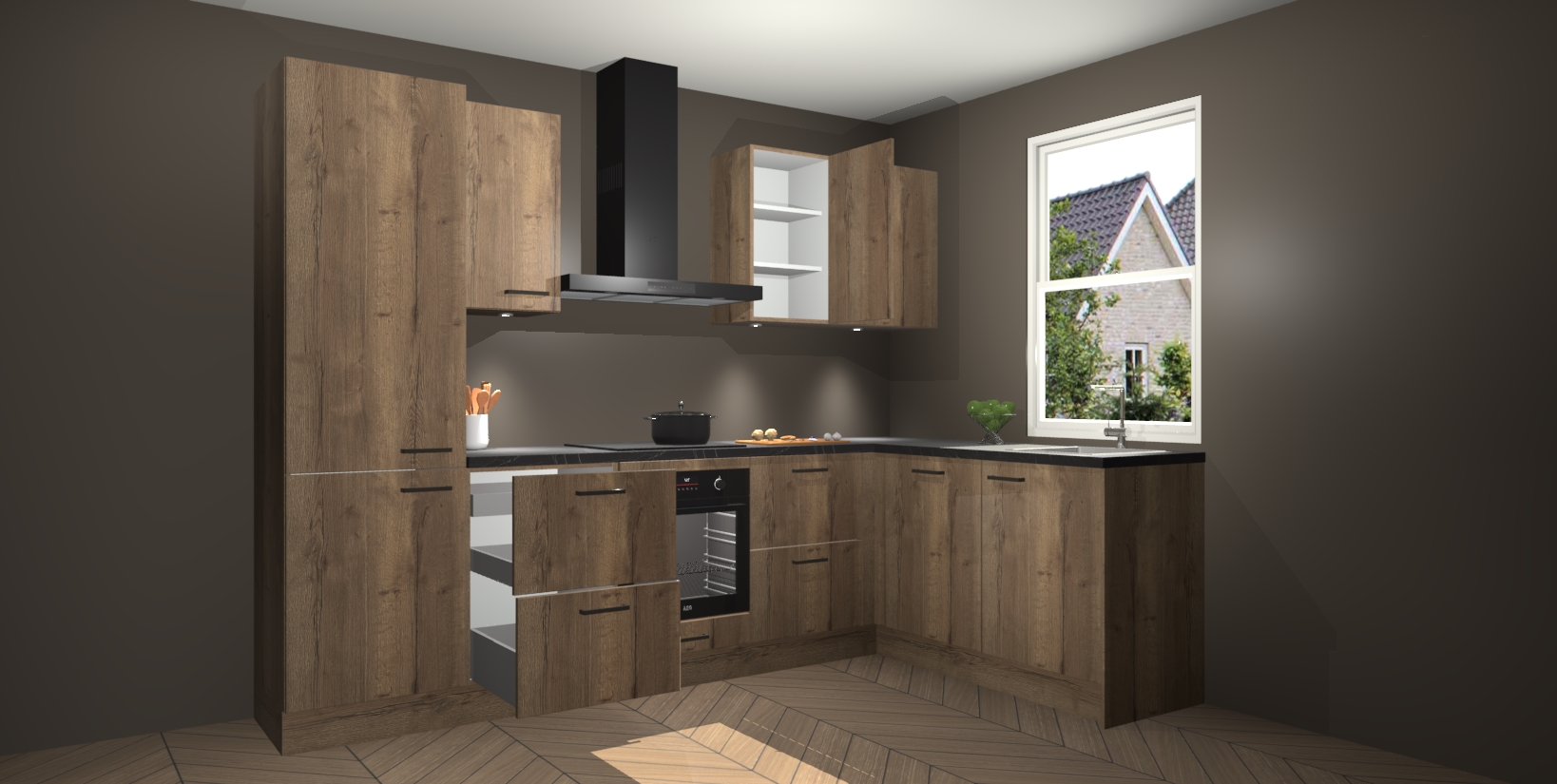 Maak kennis met de trendsettende en luxe Chocolade Eiken keuken Bazel! Deze uitzonderlijke keuken van Duitse kwaliteit is stijlvol, modern en perfect om elk huis mee op te fleuren. De binnenkant van de kasten worden meegenomen in een bijpassende kleur om een samenhangende eigentijdse esthetiek te voltooien. U zult dol zijn op hoe uw pas gerenoveerde keuken eruitziet met de Chocolade Eiken editie!