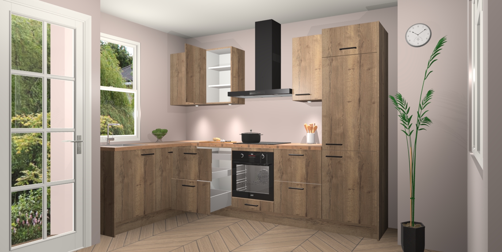U hoeft zich ook geen zorgen te maken over een gebrek aan opbergruimte, want deze keuken heeft voldoende opbergmogelijkheden zowel boven als onder het aanrecht. Om het leven nog makkelijker te maken, wordt deze moderne hoekkeuken geleverd met 5 ingebouwde apparaten, waaronder een oven, inductiekookplaat, afzuigkap, vaatwasser en koelkast, zodat u in een mum van tijd klaar bent voor actie!