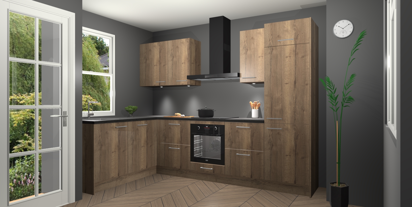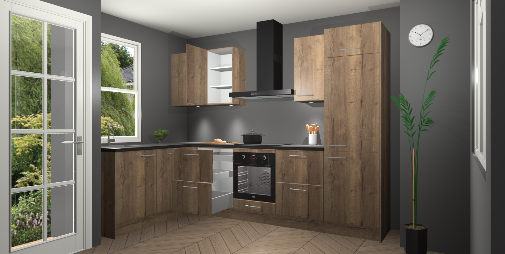 Bent u op zoek naar een strakke, moderne hoekkeuken die uw huis oppept en een moderne uitstraling geeft? Kijk dan niet verder dan de chocolade eiken keuken Beijing. Deze verbluffende hoekkeuken tilt hedendaags design naar een hoger niveau. Qua stijl is deze chique hoekkeuken voorzien van chocolade eiken accenten, om een strakke maar opvallende look te creëren. De binnenkant van de kasten is afgewerkt in dezelfde prachtige chocolade eiken kleur voor extra esthetische aantrekkingskracht.