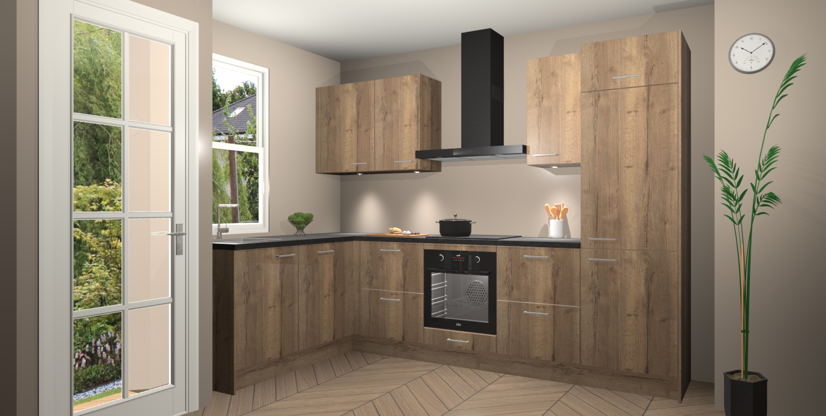Bent u op zoek naar een strakke, moderne hoekkeuken die uw huis oppept en een moderne uitstraling geeft? Kijk dan niet verder dan de chocolade eiken keuken Beijing. Deze verbluffende hoekkeuken tilt hedendaags design naar een hoger niveau. Qua stijl is deze chique hoekkeuken voorzien van chocolade eiken accenten, om een strakke maar opvallende look te creëren. De binnenkant van de kasten is afgewerkt in dezelfde prachtige chocolade eiken kleur voor extra esthetische aantrekkingskracht.