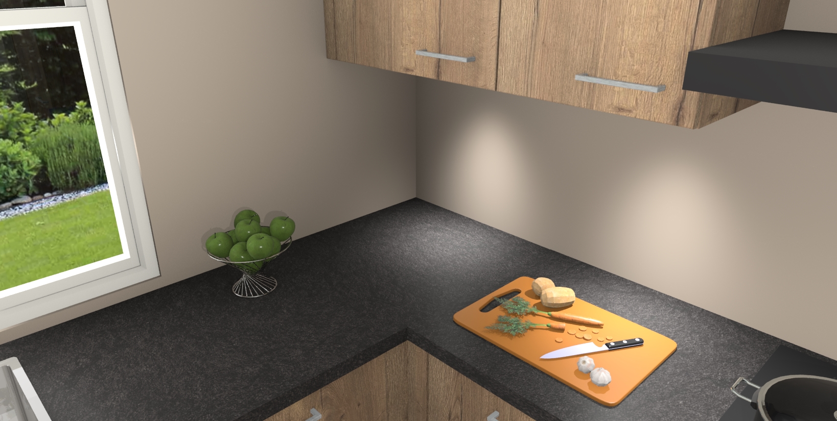 - Bij een hoekwerkblad zijn de hoeken in gevreesd en op maat gemaakt