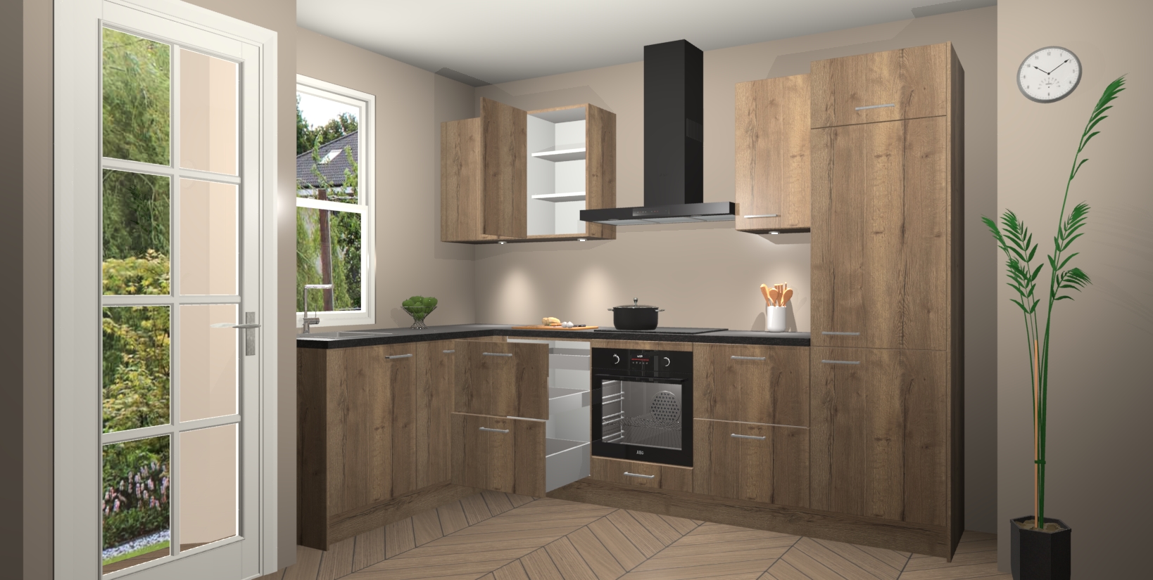 U hoeft zich ook geen zorgen te maken over een gebrek aan opbergruimte, want deze keuken heeft voldoende opbergmogelijkheden zowel boven als onder het aanrecht. Om het leven nog makkelijker te maken, wordt deze moderne hoekkeuken geleverd met 5 ingebouwde apparaten, waaronder een oven, inductiekookplaat, afzuigkap, vaatwasser en koelkast, zodat u in een mum van tijd klaar bent voor actie!