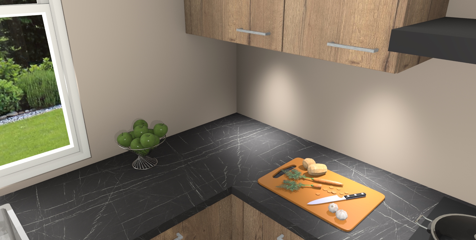- Bij een hoekwerkblad zijn de hoeken in gevreesd en op maat gemaakt