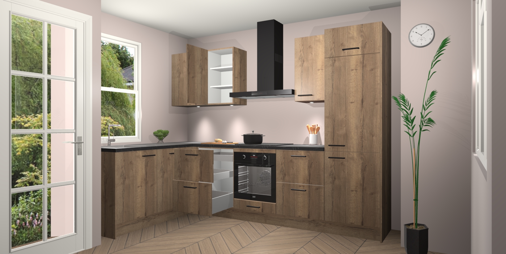 U hoeft zich ook geen zorgen te maken over een gebrek aan opbergruimte, want deze keuken heeft voldoende opbergmogelijkheden zowel boven als onder het aanrecht. Om het leven nog makkelijker te maken, wordt deze moderne hoekkeuken geleverd met 5 ingebouwde apparaten, waaronder een oven, inductiekookplaat, afzuigkap, vaatwasser en koelkast, zodat u in een mum van tijd klaar bent voor actie!