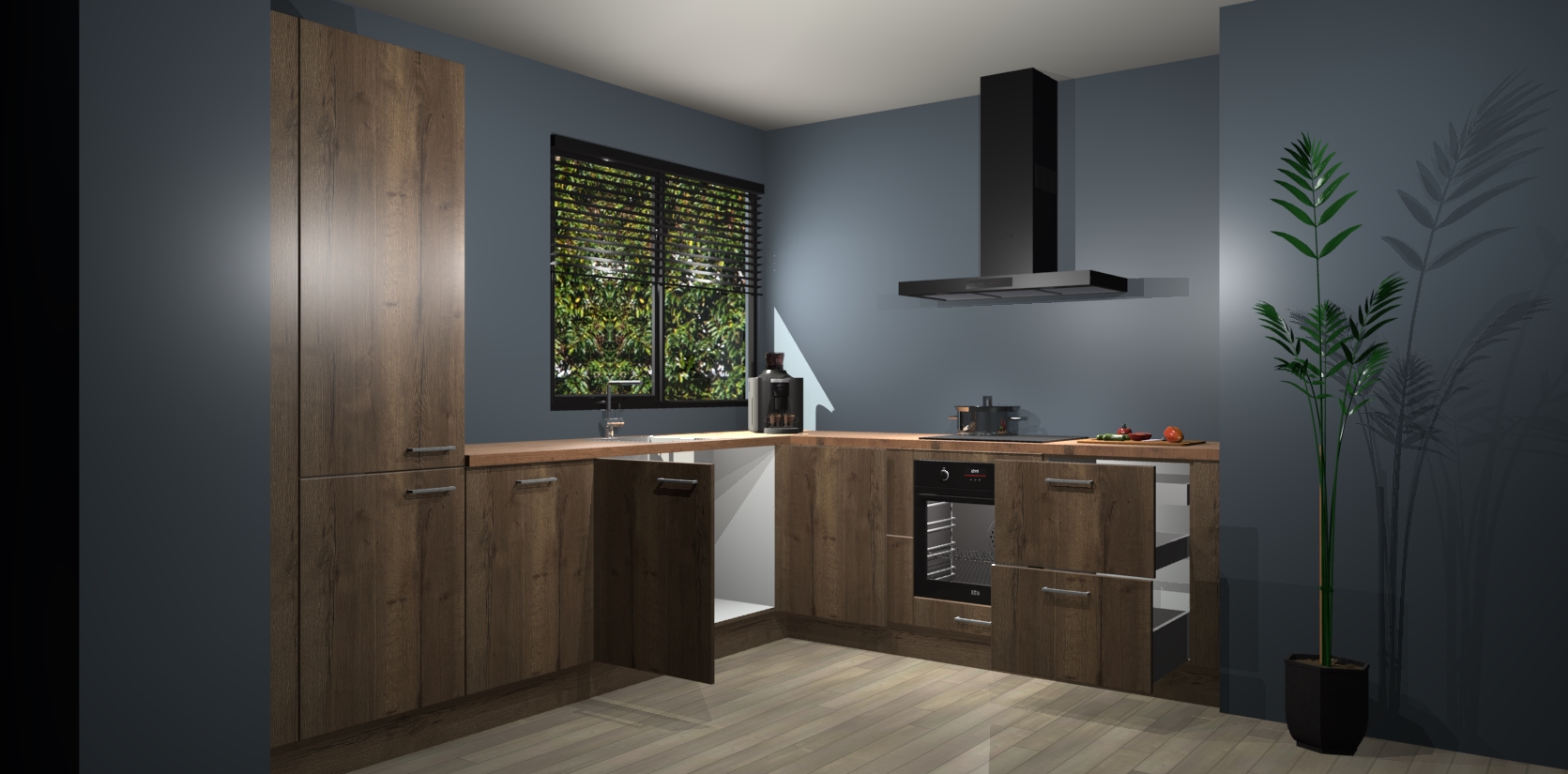 Wij presenteren de revolutie in keukens: de Chocolade Eiken keuken Benidorm. Met modern design, een tijdloos uiterlijk en kasten die al voor gemonteerd worden geleverd, laat deze stijlvolle keuken uw kookervaring op een hele nieuwe manier transformeren.