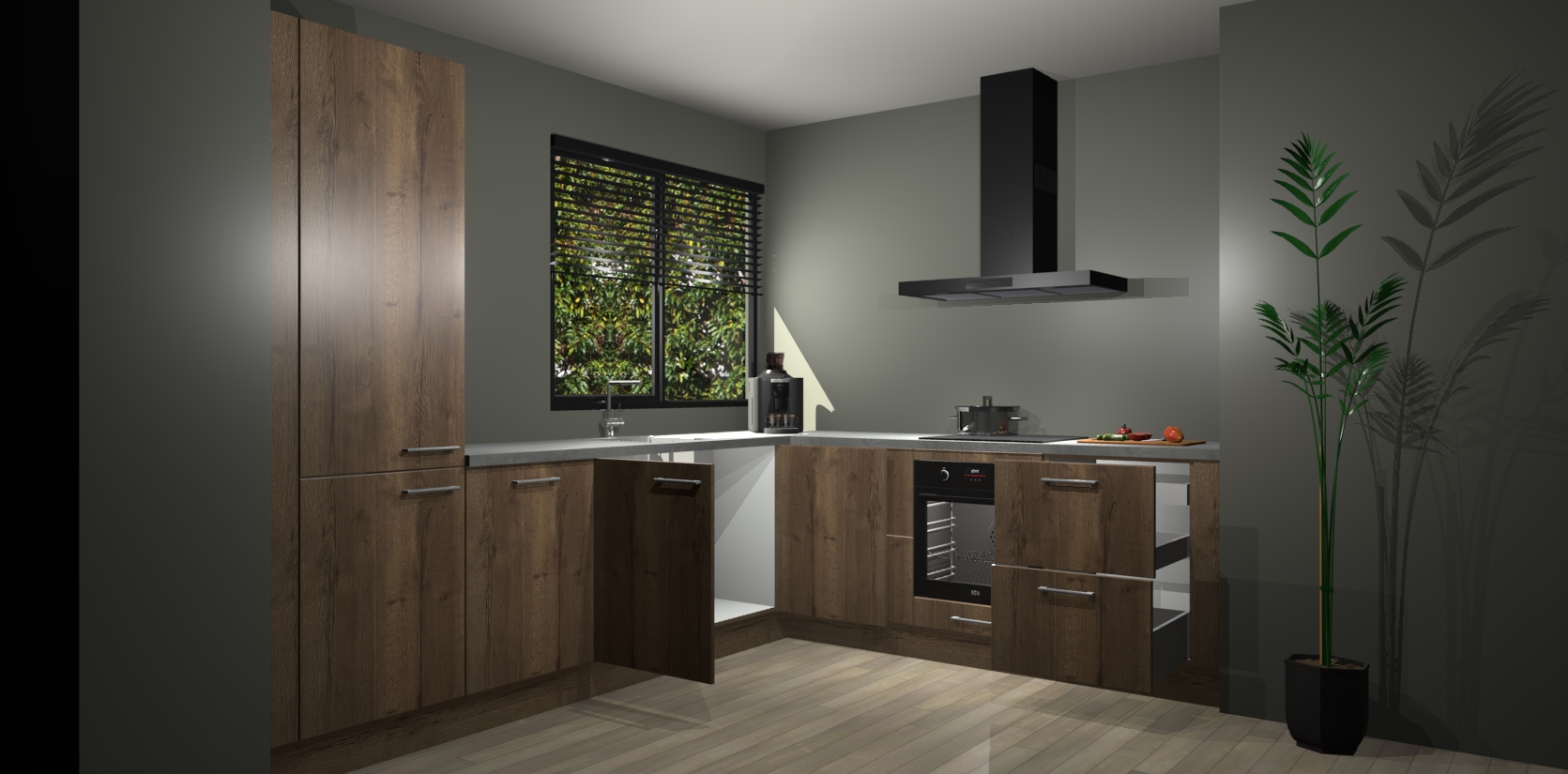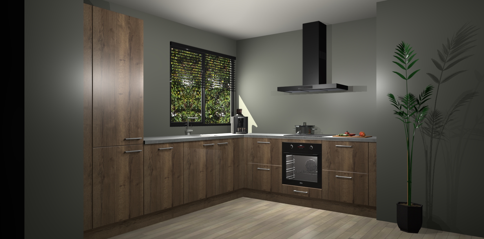 Wij presenteren de revolutie in keukens: de Chocolade Eiken keuken Benidorm. Met modern design, een tijdloos uiterlijk en kasten die al voor gemonteerd worden geleverd, laat deze stijlvolle keuken uw kookervaring op een hele nieuwe manier transformeren.