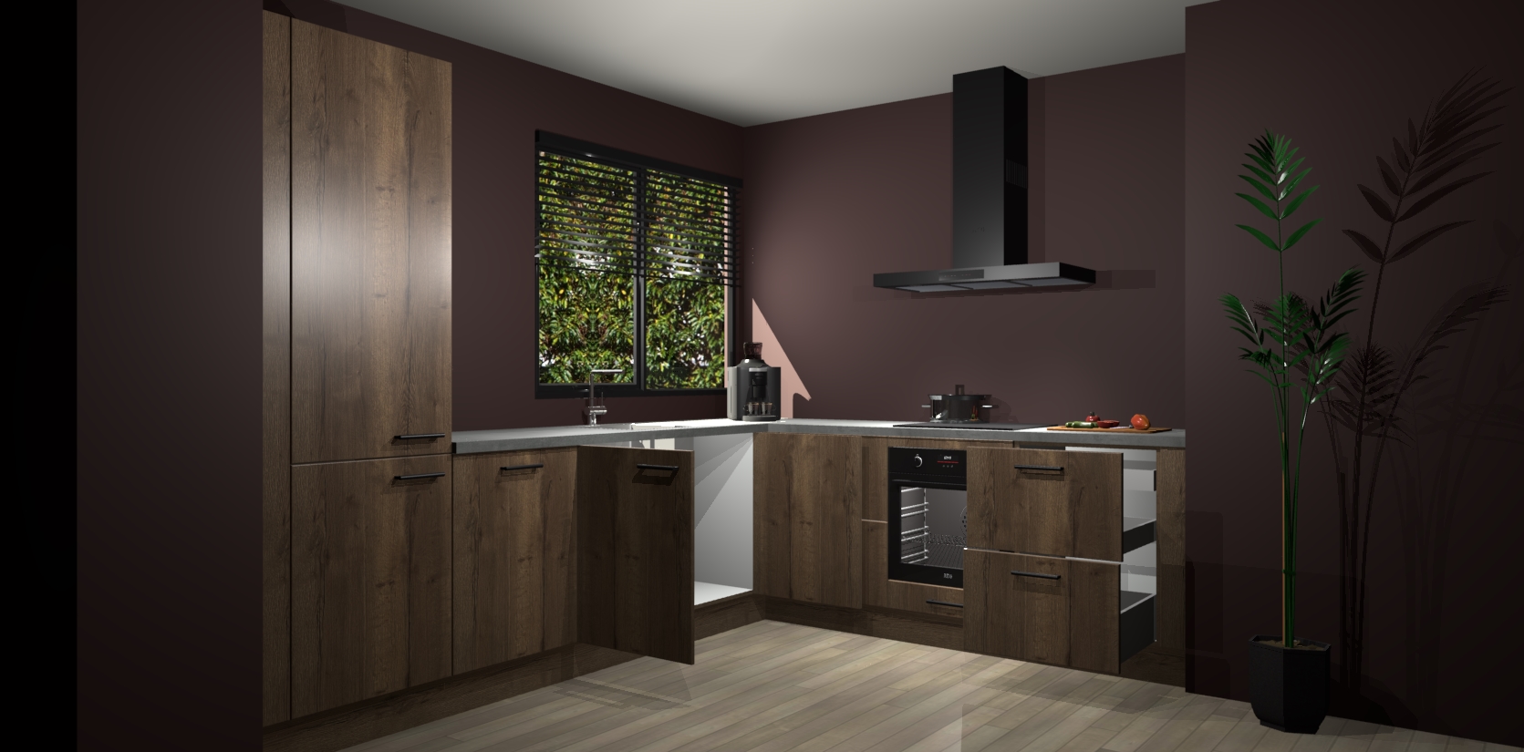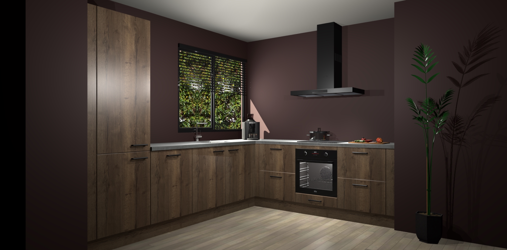 Wij presenteren de revolutie in keukens: de Chocolade Eiken keuken Benidorm. Met modern design, een tijdloos uiterlijk en kasten die al voor gemonteerd worden geleverd, laat deze stijlvolle keuken uw kookervaring op een hele nieuwe manier transformeren.