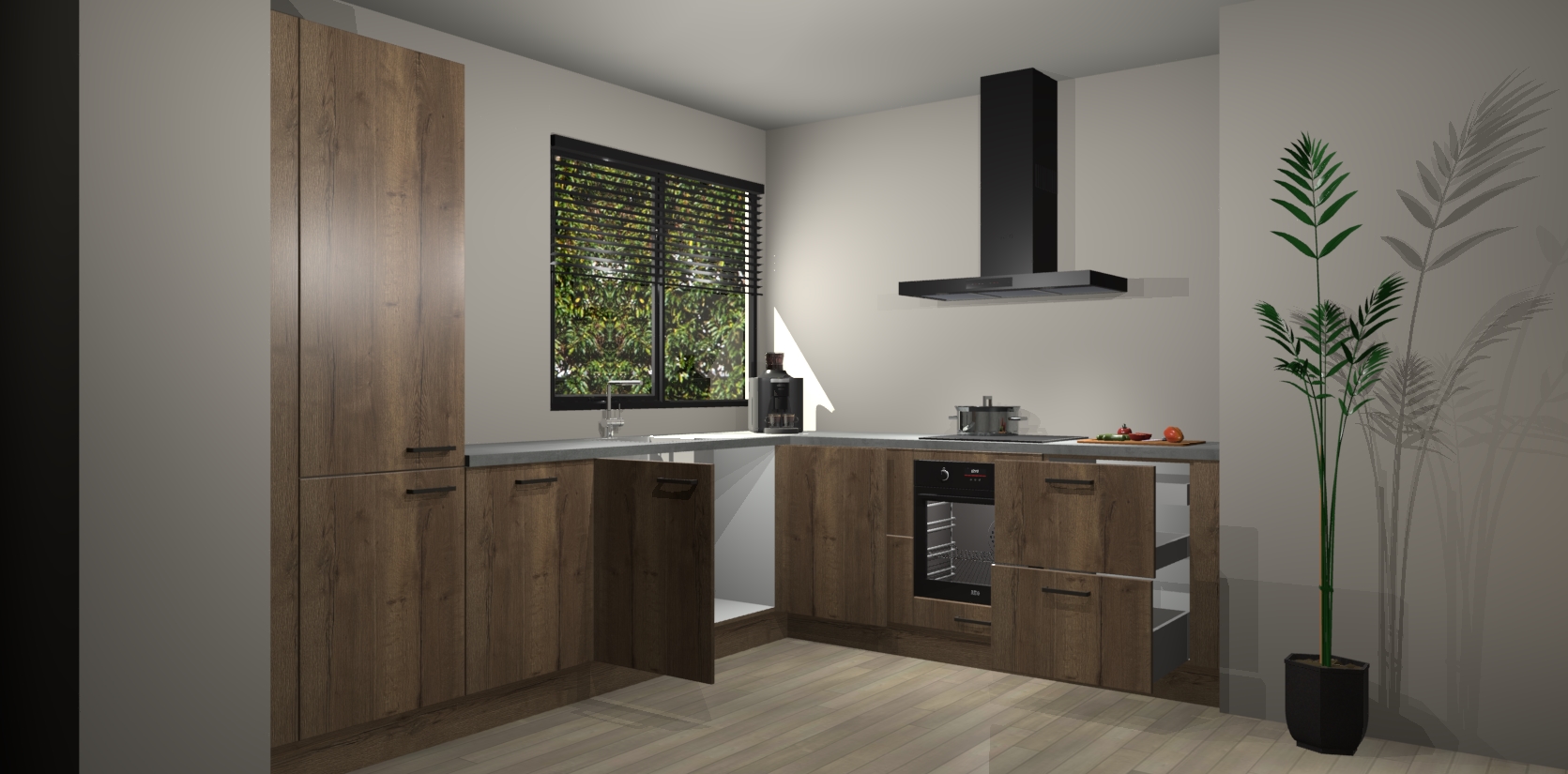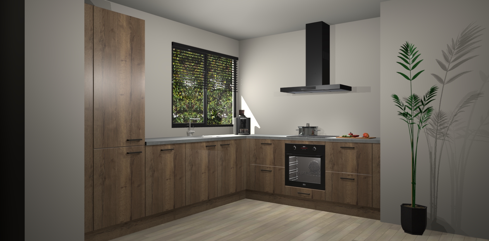 Wij presenteren de revolutie in keukens: de Chocolade Eiken keuken Benidorm. Met modern design, een tijdloos uiterlijk en kasten die al voor gemonteerd worden geleverd, laat deze stijlvolle keuken uw kookervaring op een hele nieuwe manier transformeren.