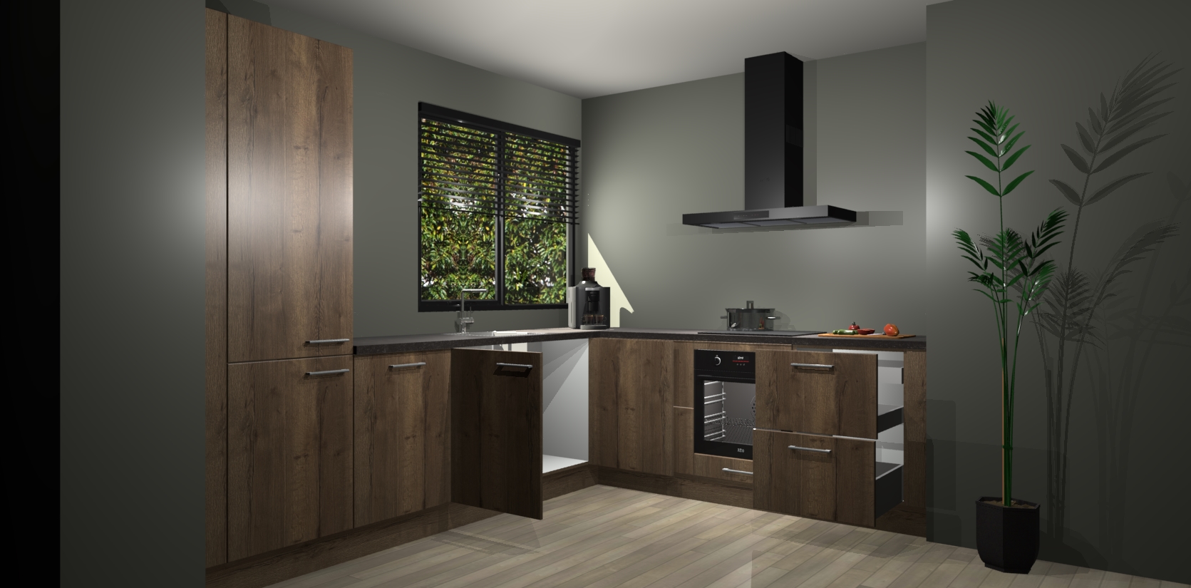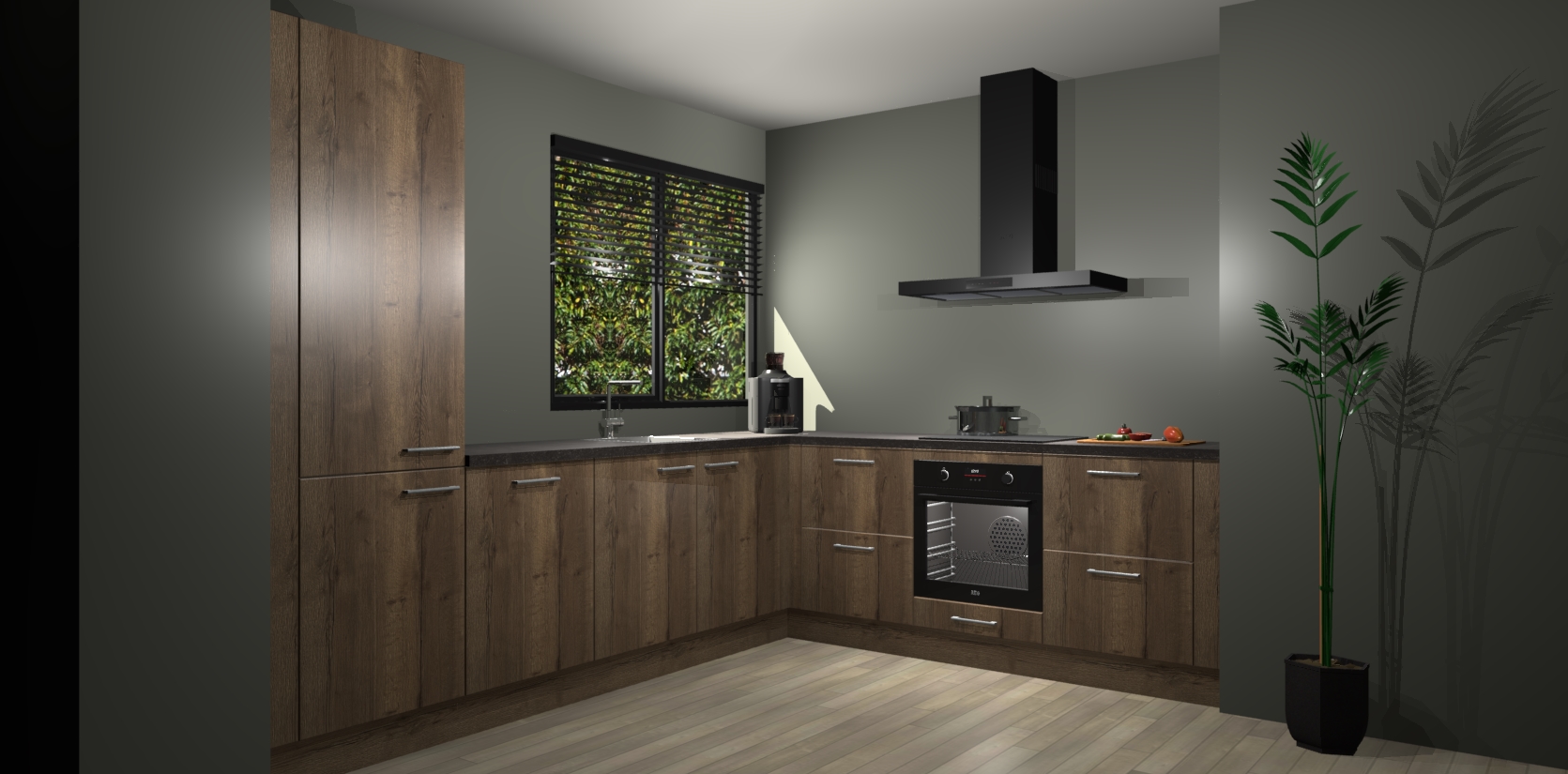 Wij presenteren de revolutie in keukens: de Chocolade Eiken keuken Benidorm. Met modern design, een tijdloos uiterlijk en kasten die al voor gemonteerd worden geleverd, laat deze stijlvolle keuken uw kookervaring op een hele nieuwe manier transformeren.