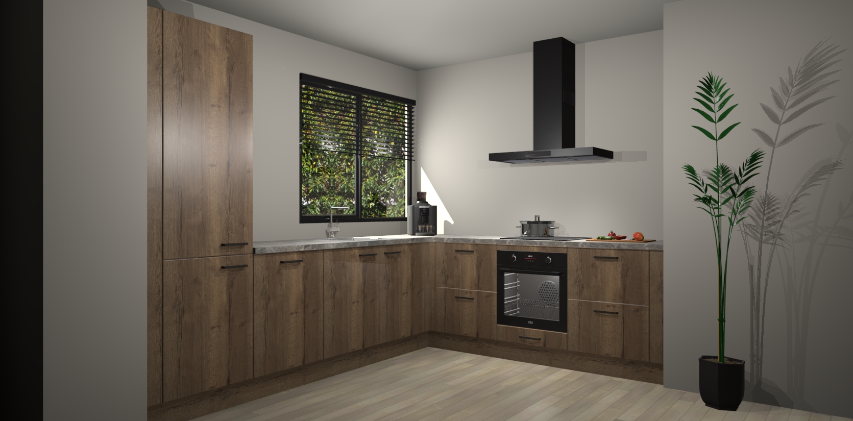 Wij presenteren de revolutie in keukens: de Chocolade Eiken keuken Benidorm. Met modern design, een tijdloos uiterlijk en kasten die al voor gemonteerd worden geleverd, laat deze stijlvolle keuken uw kookervaring op een hele nieuwe manier transformeren.