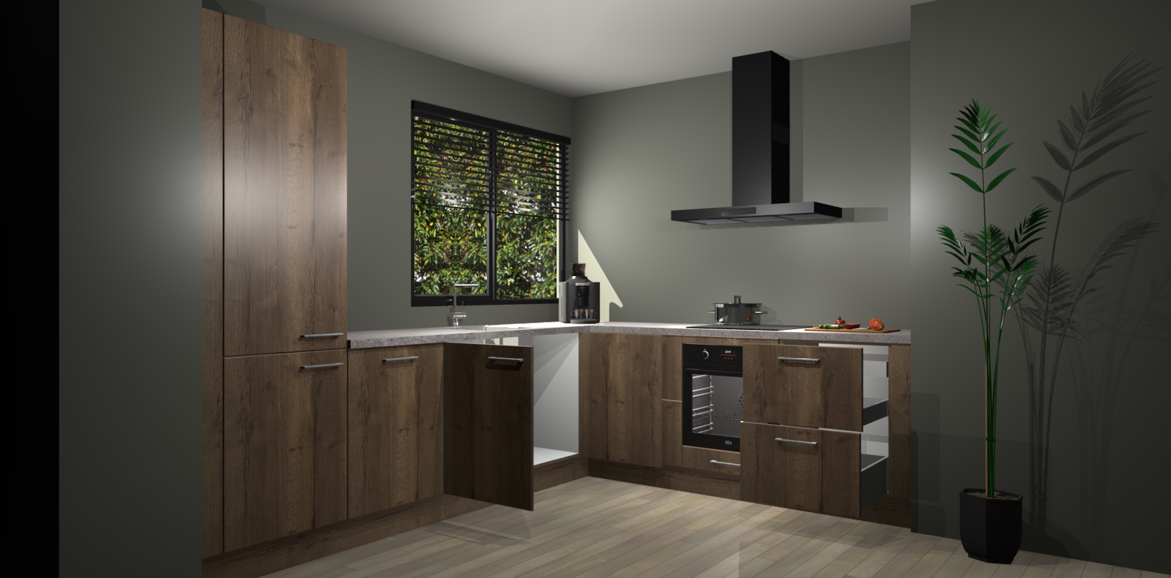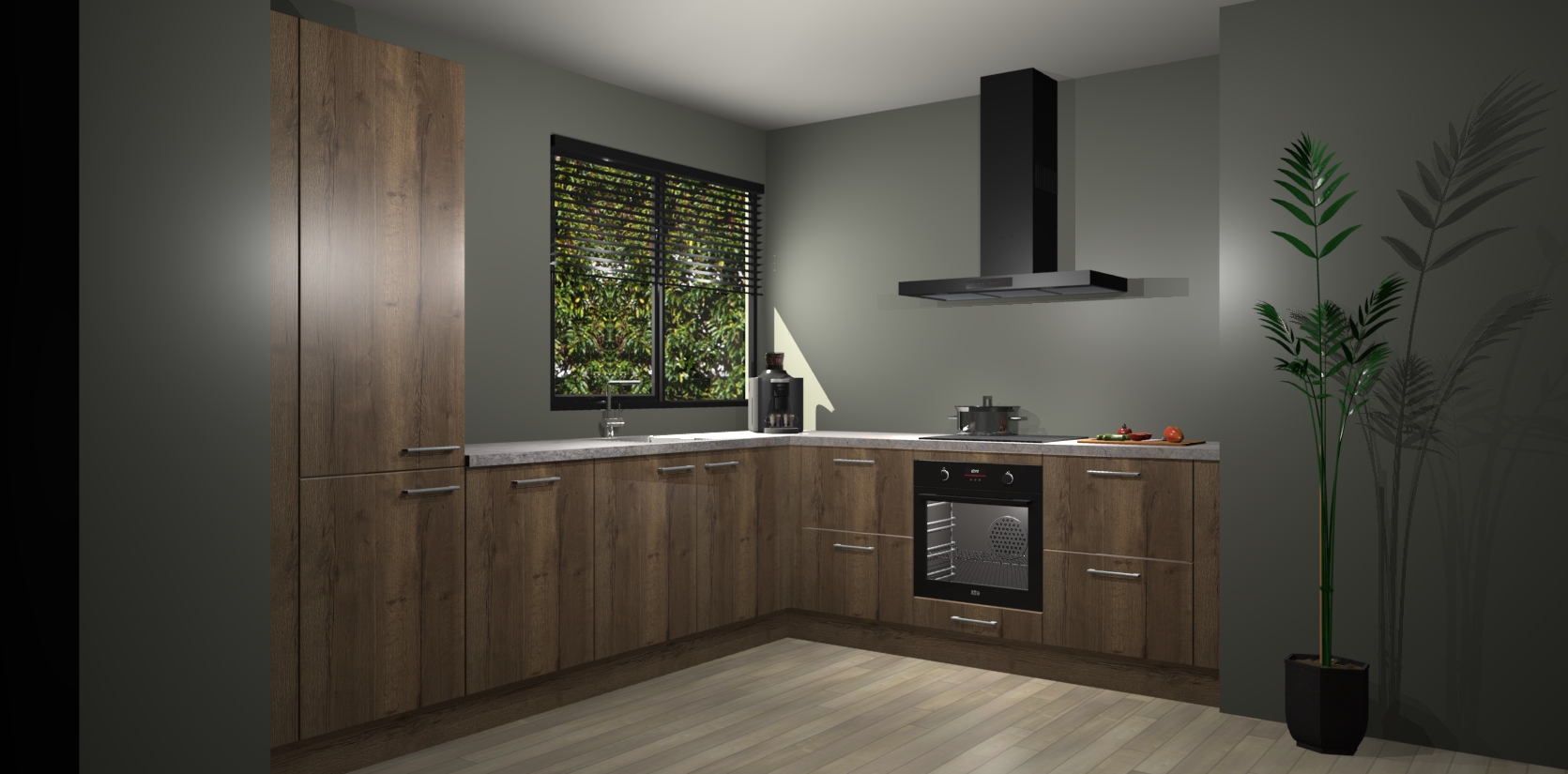 Wij presenteren de revolutie in keukens: de Chocolade Eiken keuken Benidorm. Met modern design, een tijdloos uiterlijk en kasten die al voor gemonteerd worden geleverd, laat deze stijlvolle keuken uw kookervaring op een hele nieuwe manier transformeren.