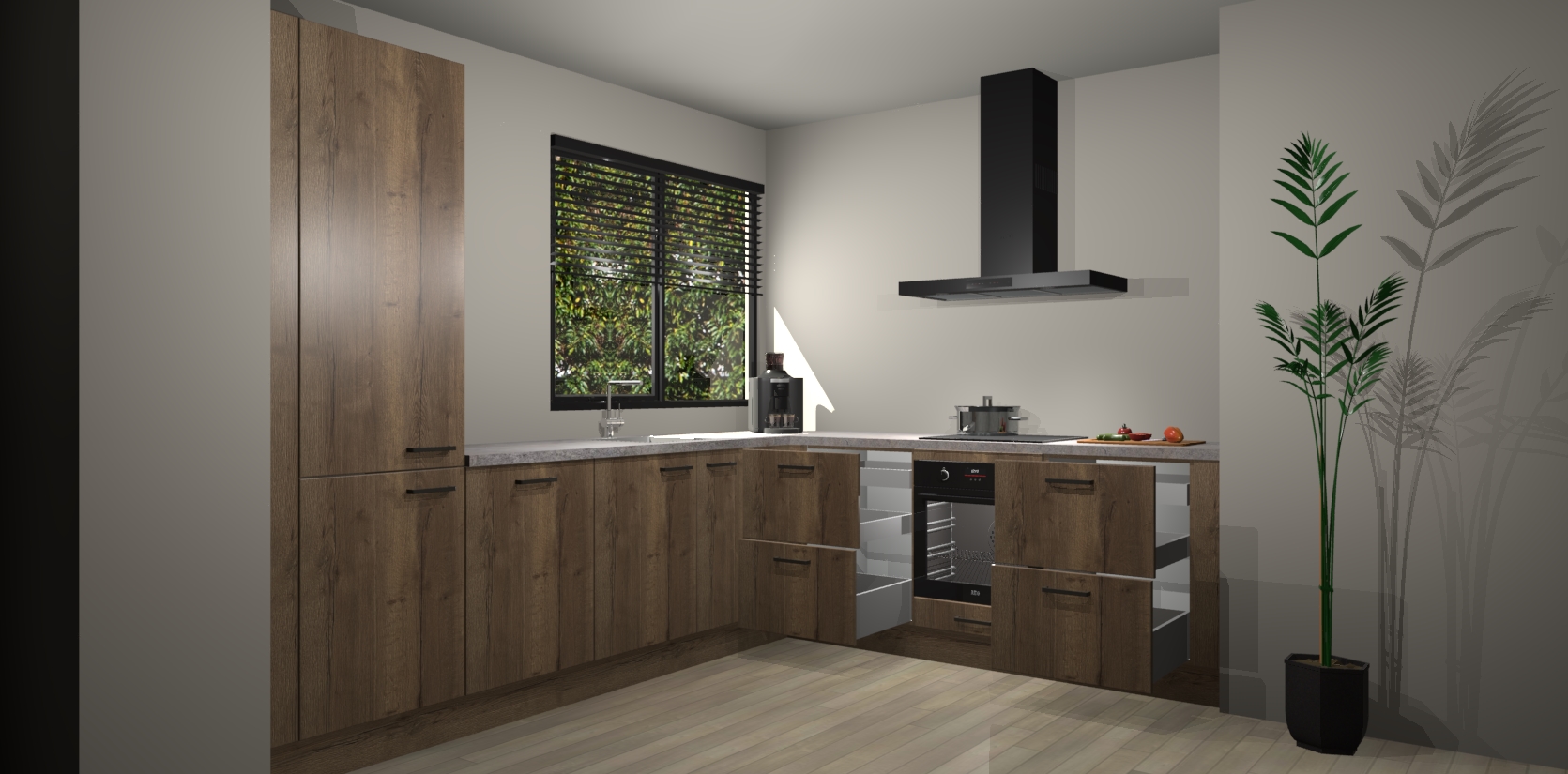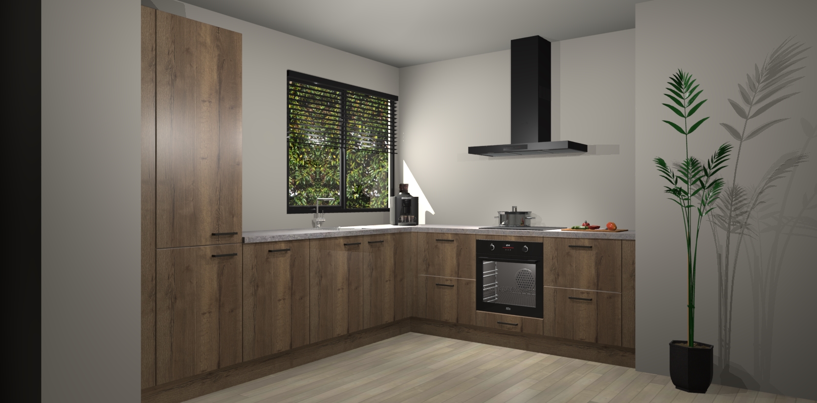 Wij presenteren de revolutie in keukens: de Chocolade Eiken keuken Benidorm. Met modern design, een tijdloos uiterlijk en kasten die al voor gemonteerd worden geleverd, laat deze stijlvolle keuken uw kookervaring op een hele nieuwe manier transformeren.