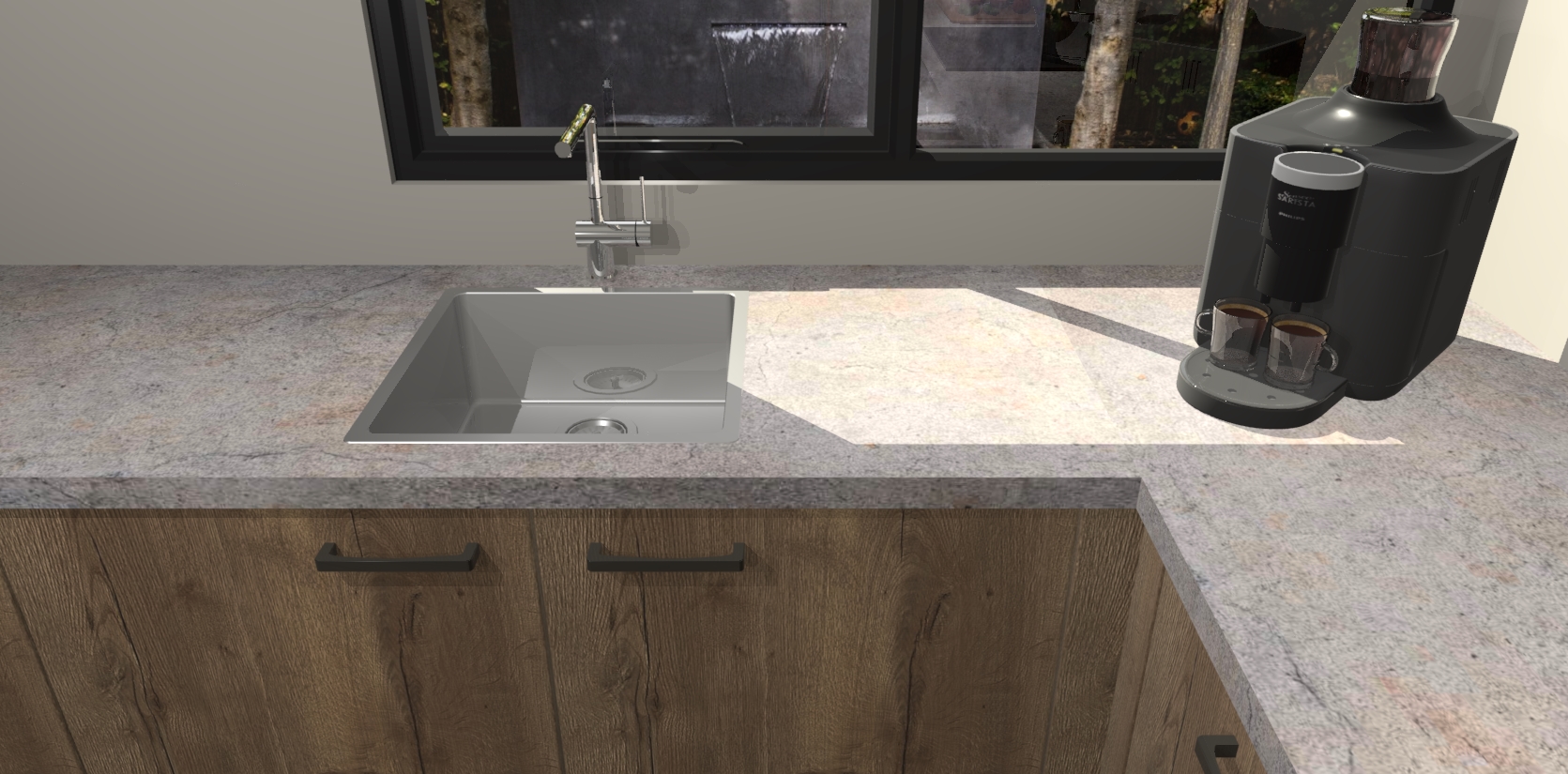 • De spoelbak is nog niet in gevreesd. Dit dient tijdens het werk gedaan te worden