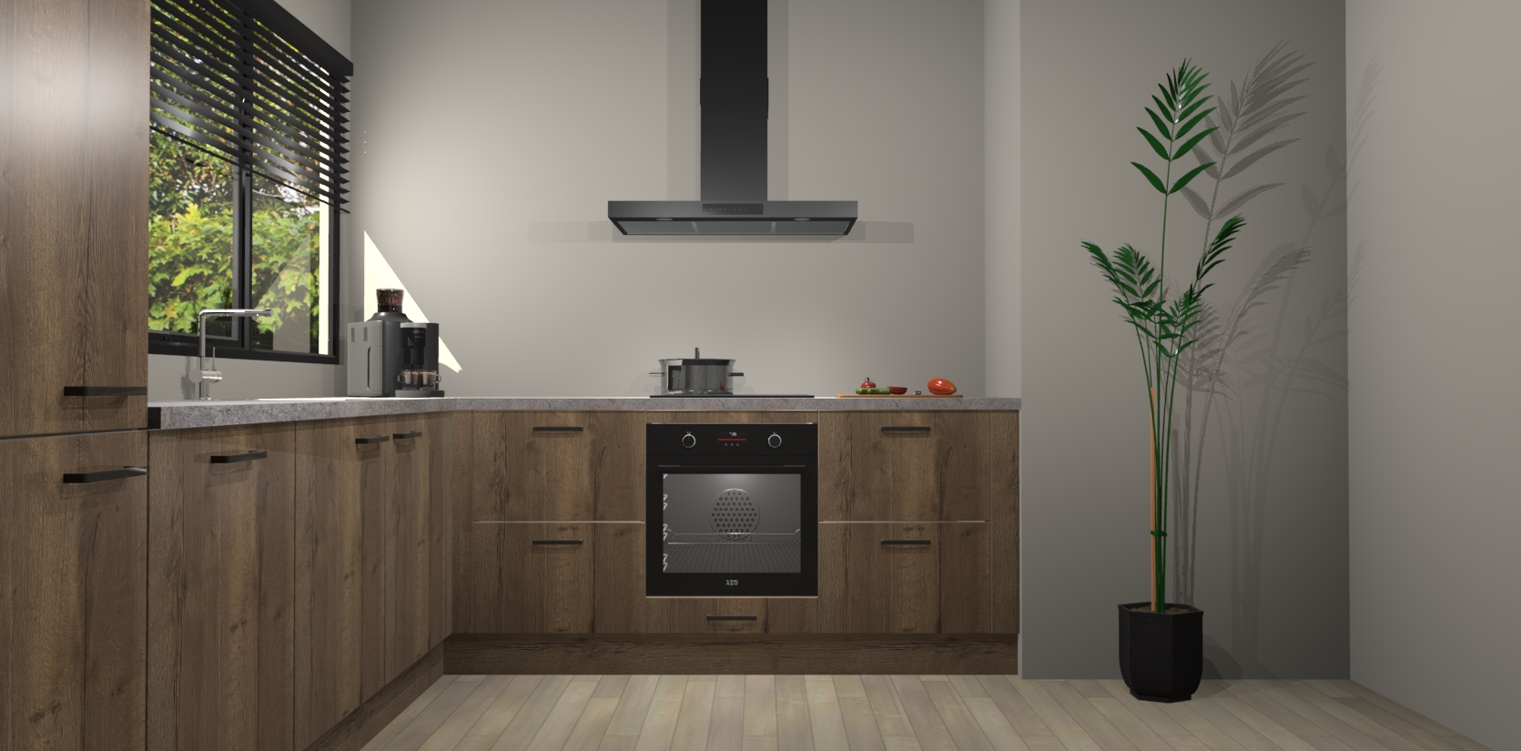 Met een modern, tijdloos design en ruime opslagruimte, zult u zich in no-time thuis voelen in uw nieuwe keuken. Uw leven wordt eenvoudiger met de soft-close deuren die voor het ultieme stille comfort zorgen - geen geluid dat u stoort terwijl u kookt. Ook is de keuken voorzien van 5 ingebouwde apparaten: een oven, inductie kookplaat, afzuigkap, vaatwasser en koelkast. Deze kunnen gemakkelijk na bestelling worden bijgewerkt naar AEG - waardoor uw luxe ervaring compleet is.