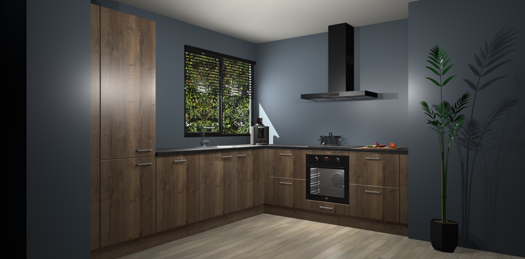 Wij presenteren de revolutie in keukens: de Chocolade Eiken keuken Benidorm. Met modern design, een tijdloos uiterlijk en kasten die al voor gemonteerd worden geleverd, laat deze stijlvolle keuken uw kookervaring op een hele nieuwe manier transformeren.