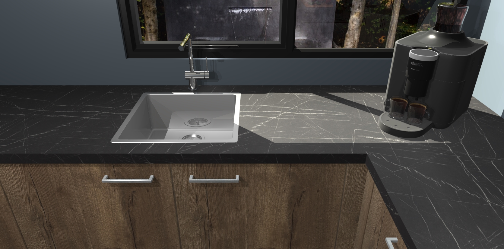 - Bij een hoekwerkblad zijn de hoeken in gevreesd en op maat gemaakt