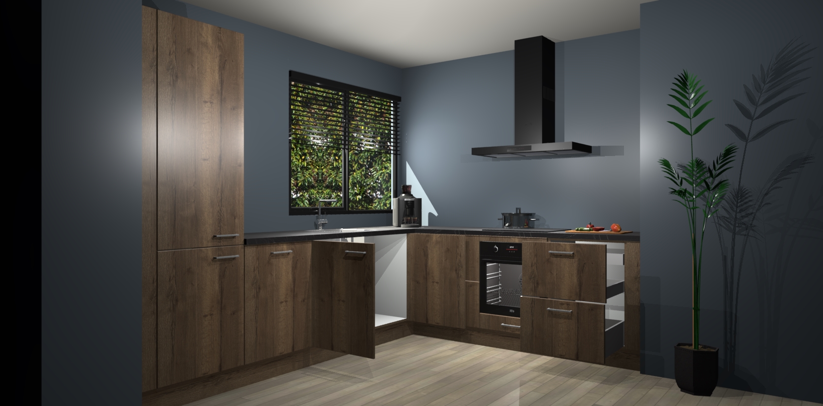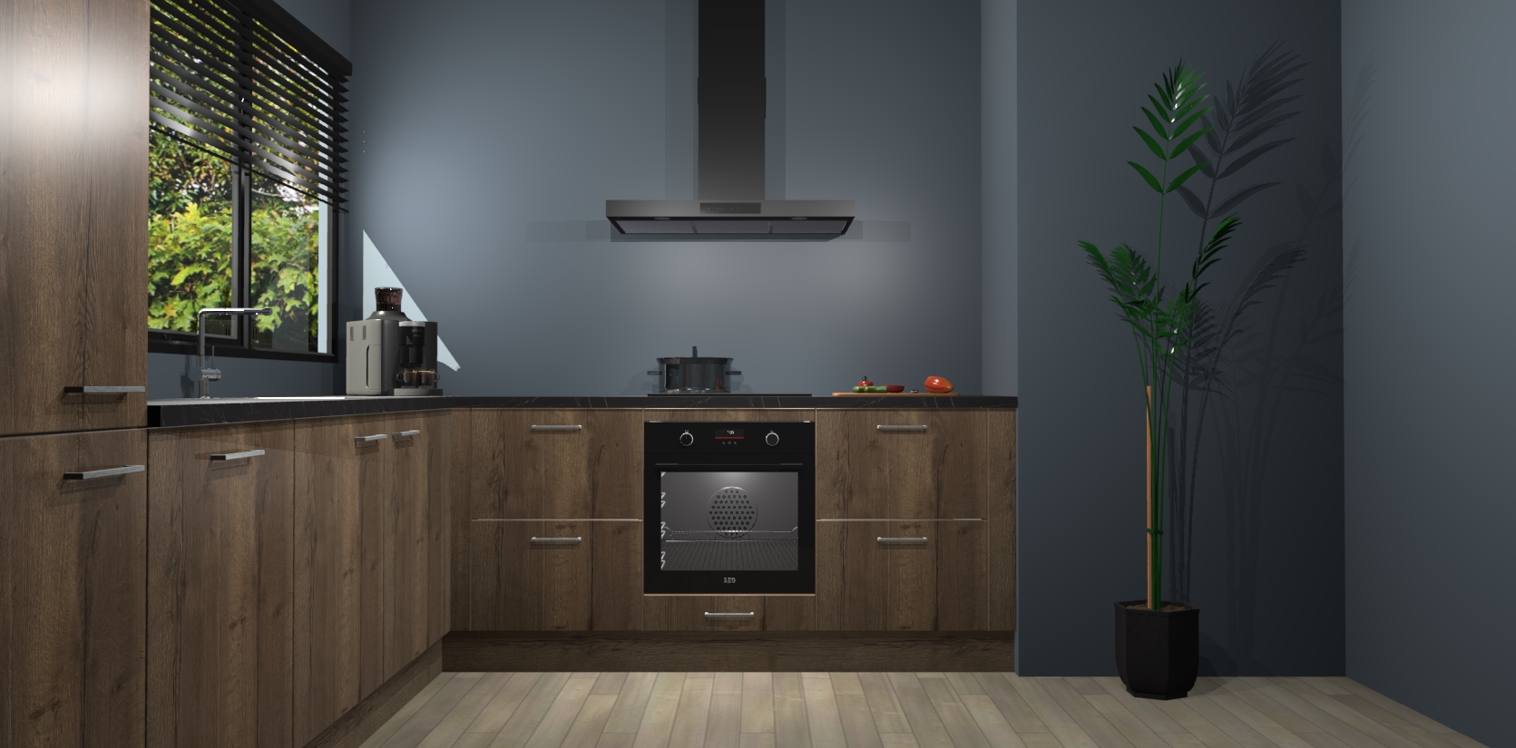 Met een modern, tijdloos design en ruime opslagruimte, zult u zich in no-time thuis voelen in uw nieuwe keuken. Uw leven wordt eenvoudiger met de soft-close deuren die voor het ultieme stille comfort zorgen - geen geluid dat u stoort terwijl u kookt. Ook is de keuken voorzien van 5 ingebouwde apparaten: een oven, inductie kookplaat, afzuigkap, vaatwasser en koelkast. Deze kunnen gemakkelijk na bestelling worden bijgewerkt naar AEG - waardoor uw luxe ervaring compleet is.