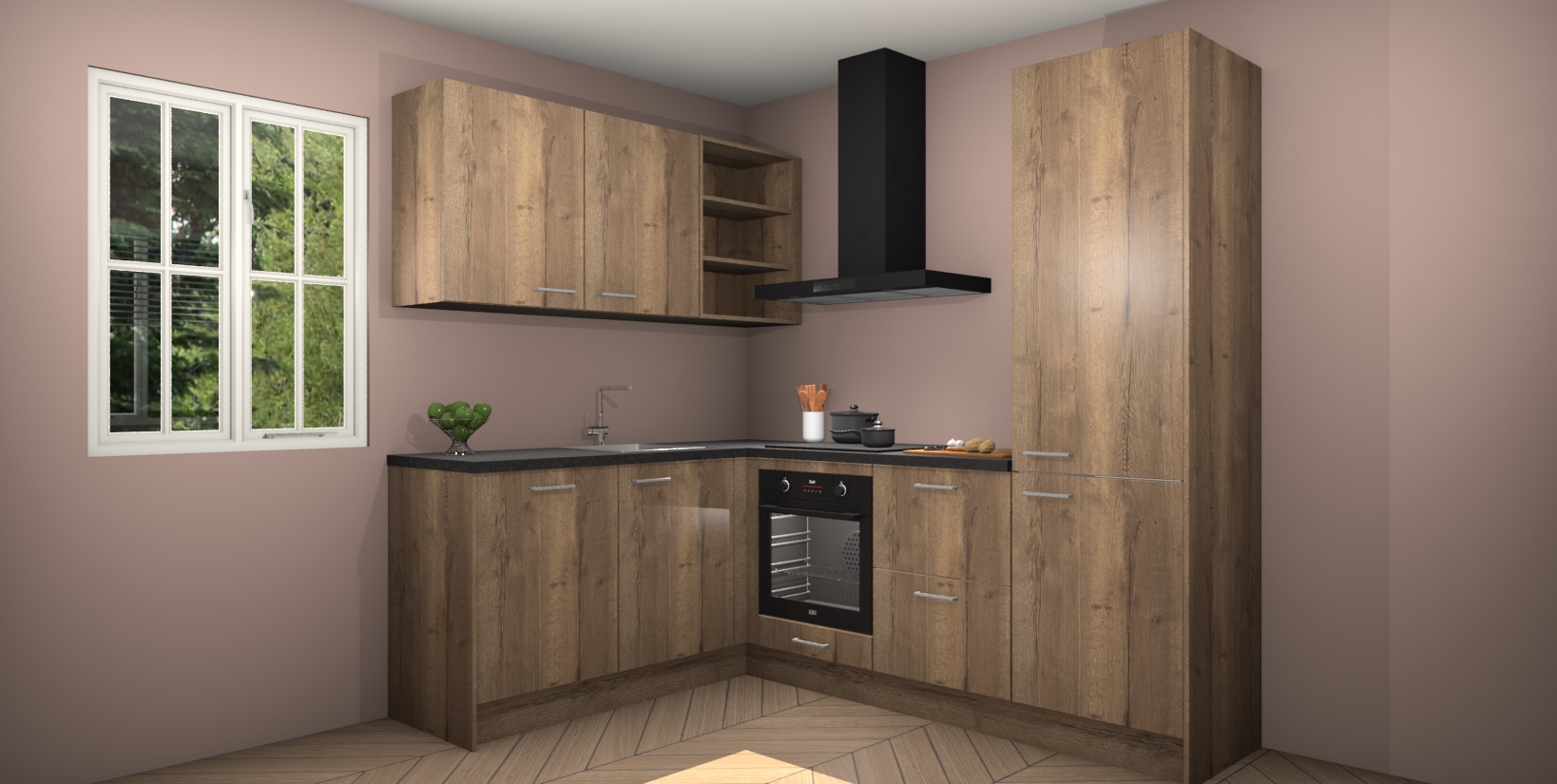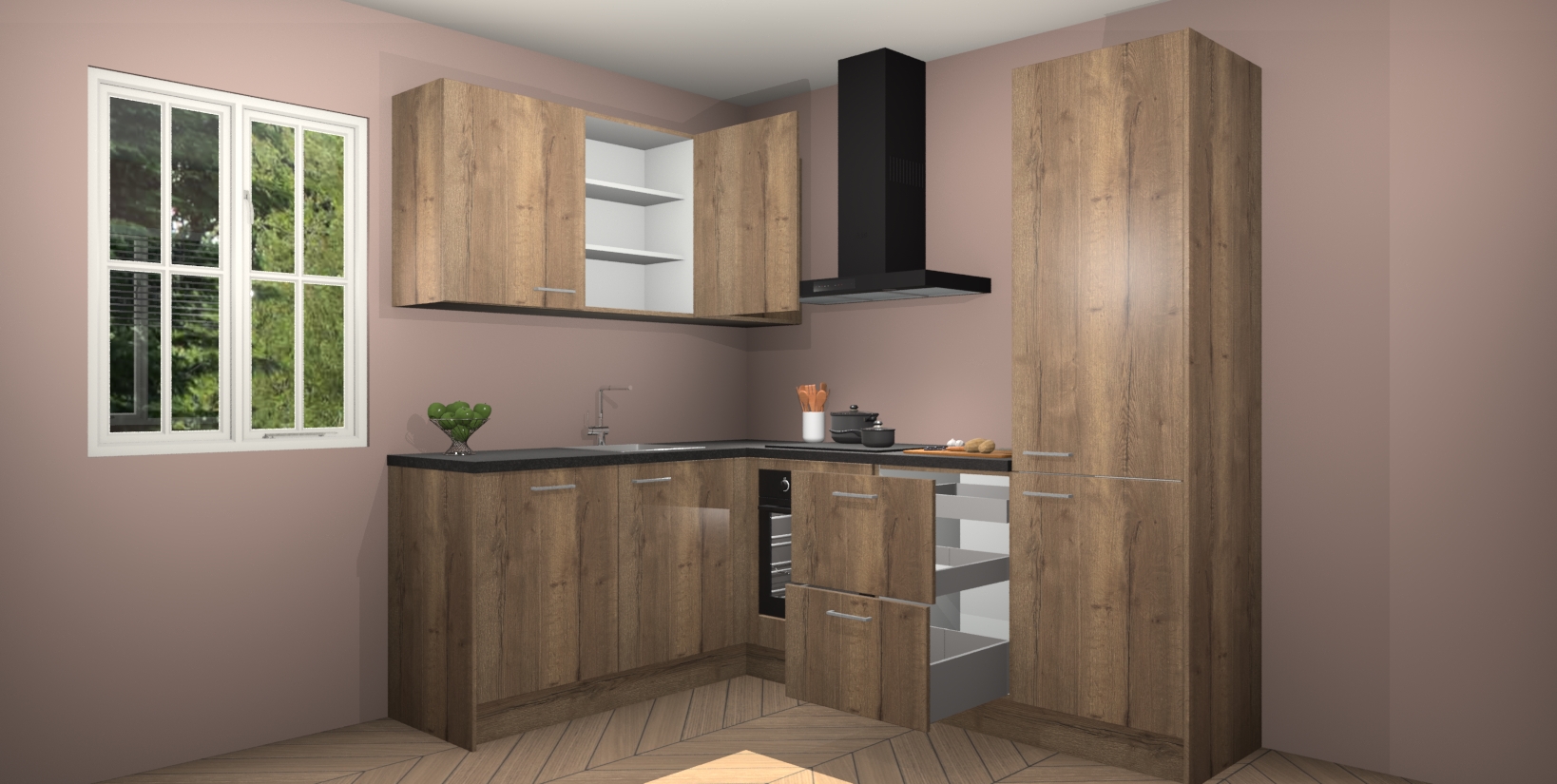 Maak kennis met de Chocolade Eiken keuken Boekarest, een moderne hoekkeuken waar al uw vrienden en familie jaloers op zullen zijn! Het verbluffende mooie ontwerp past in elk interieur en is een ideale keuze voor wie op zoek is naar een klassieke, maar verfijnde look.