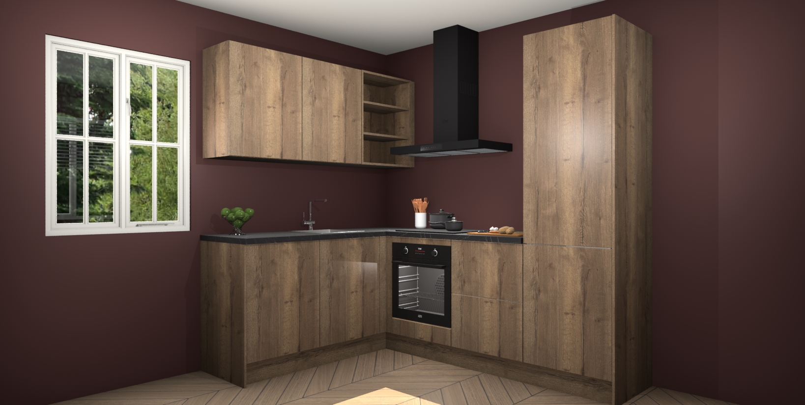 Maak kennis met de Chocolade Eiken keuken Boekarest, een moderne hoekkeuken waar al uw vrienden en familie jaloers op zullen zijn! Het verbluffende mooie ontwerp past in elk interieur en is een ideale keuze voor wie op zoek is naar een klassieke, maar verfijnde look.