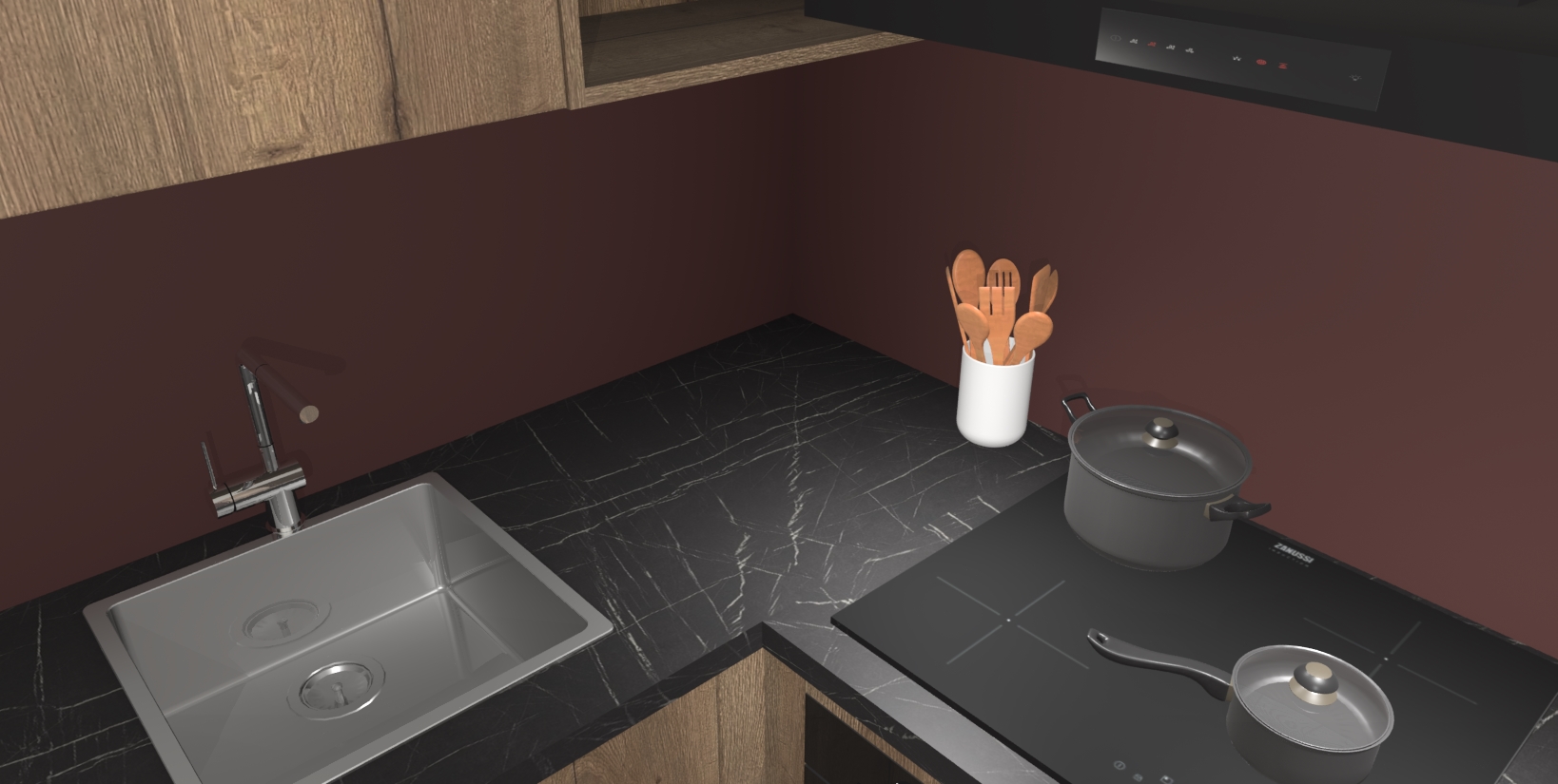 - Uitsparing van kookplaat, spoelbak en kraan dient u zelf te verzorgen.