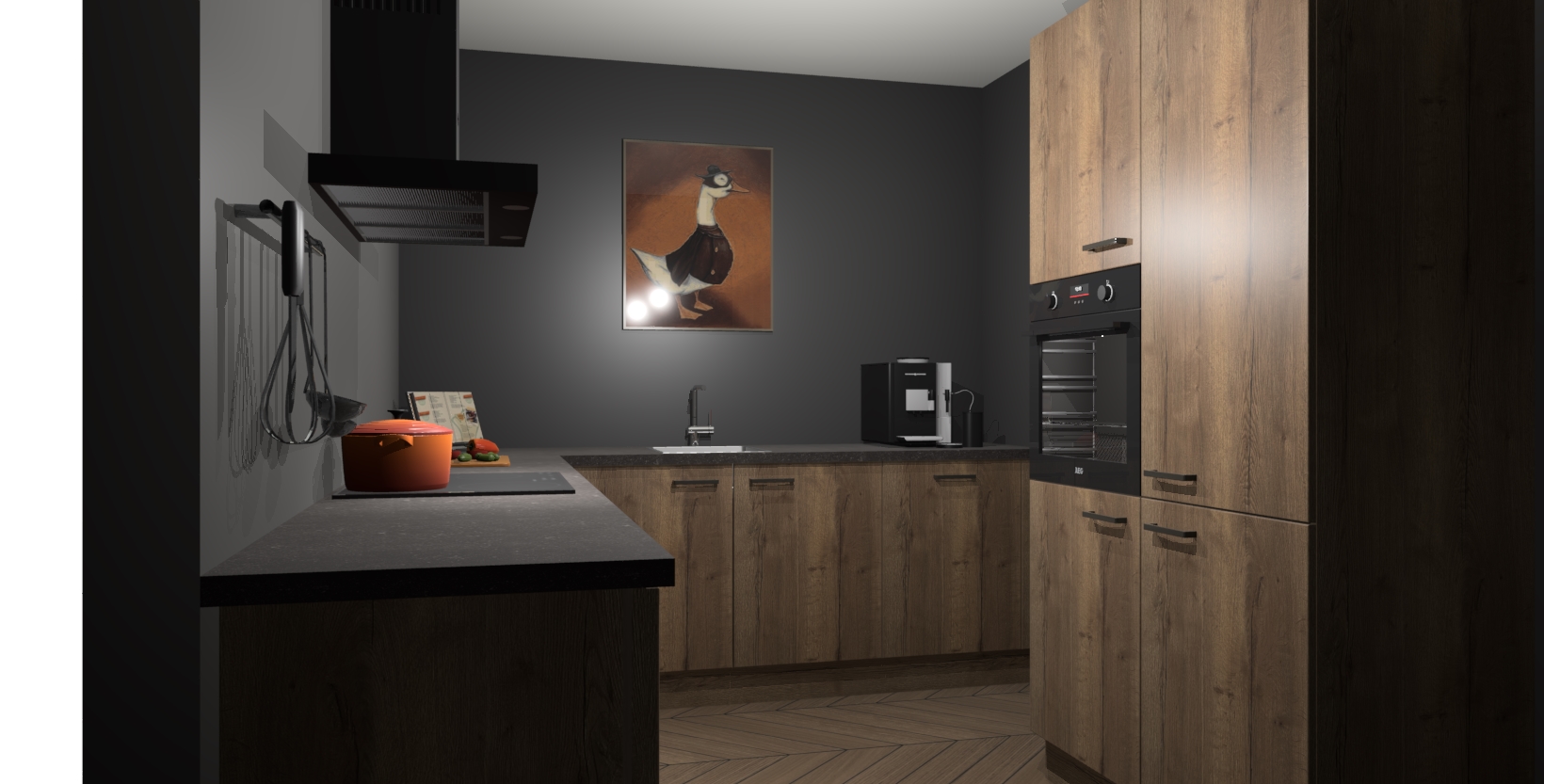 Met een modern, tijdloos design en ruime opslagruimte, zult u zich in no-time thuis voelen in uw nieuwe keuken. Uw leven wordt eenvoudiger met de soft-close deuren die voor het ultieme stille comfort zorgen - geen geluid dat u stoort terwijl u kookt. Ook is de keuken voorzien van 5 ingebouwde apparaten: een oven, inductie kookplaat, afzuigkap, vaatwasser en koelkast. Deze kunnen gemakkelijk na bestelling worden bijgewerkt naar AEG - waardoor uw luxe ervaring compleet is.