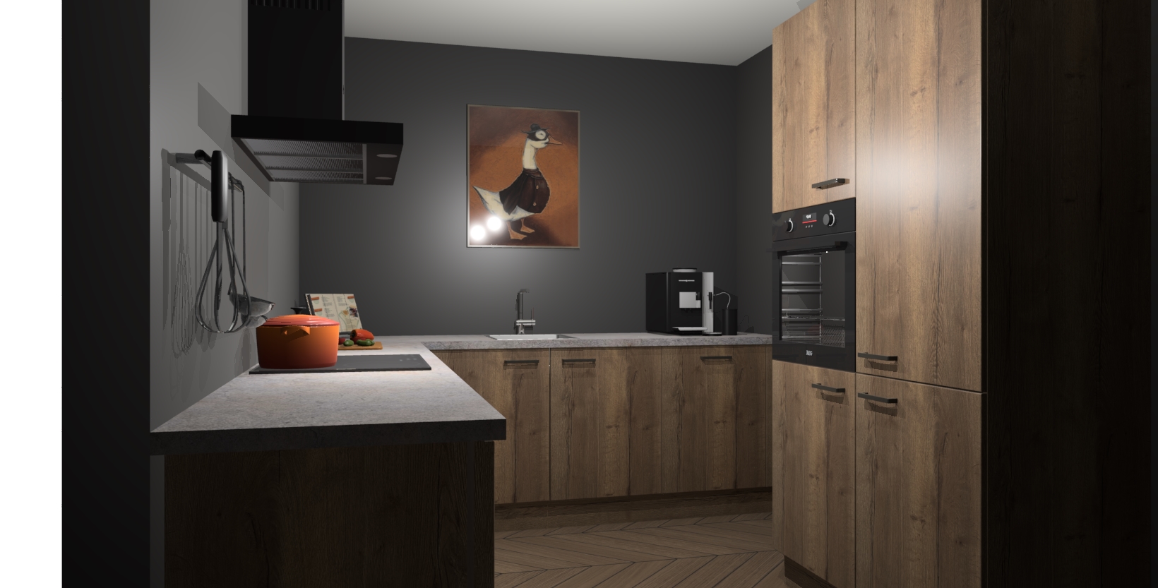 Met een modern, tijdloos design en ruime opslagruimte, zult u zich in no-time thuis voelen in uw nieuwe keuken. Uw leven wordt eenvoudiger met de soft-close deuren die voor het ultieme stille comfort zorgen - geen geluid dat u stoort terwijl u kookt. Ook is de keuken voorzien van 5 ingebouwde apparaten: een oven, inductie kookplaat, afzuigkap, vaatwasser en koelkast. Deze kunnen gemakkelijk na bestelling worden bijgewerkt naar AEG - waardoor uw luxe ervaring compleet is.