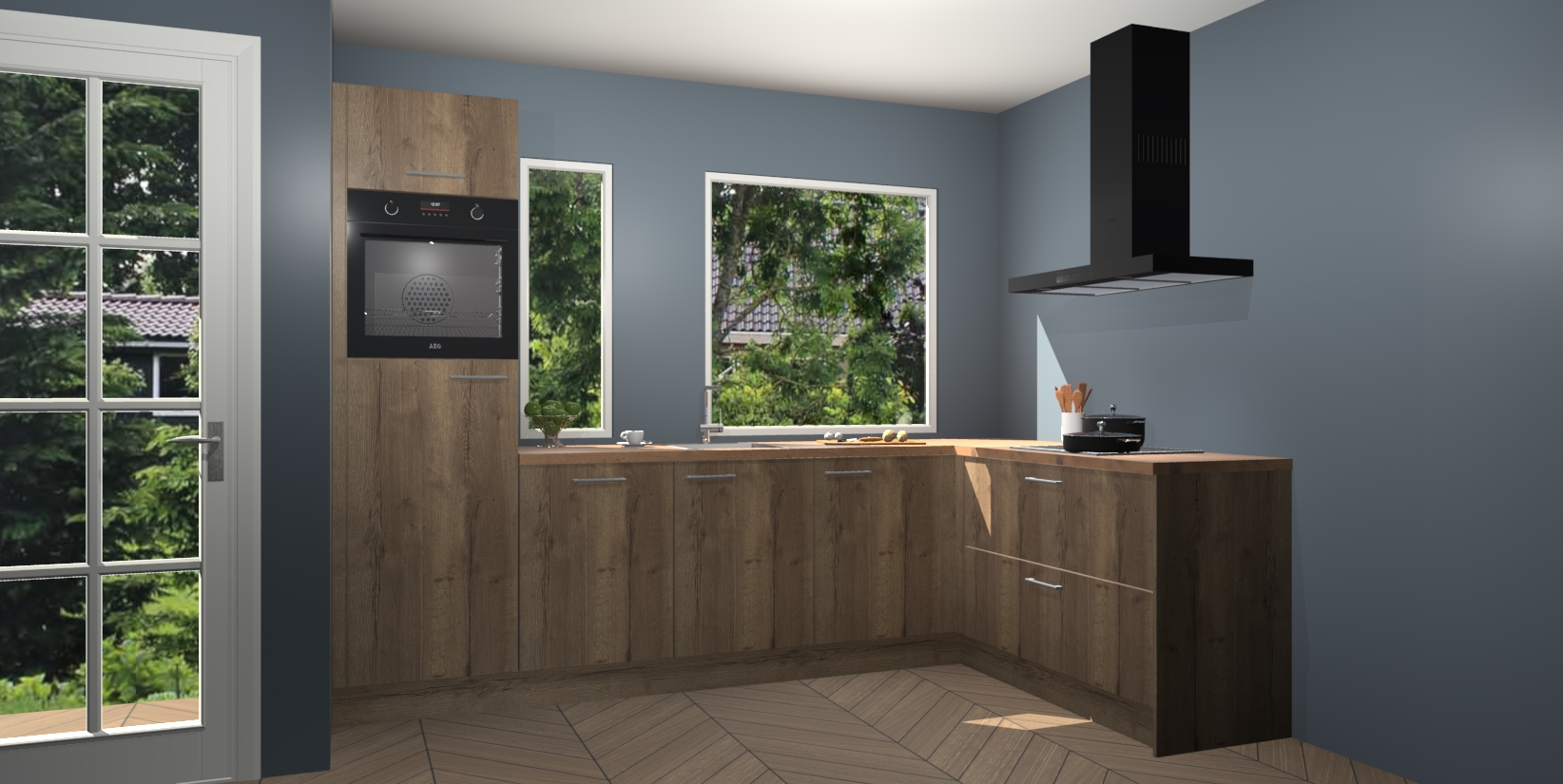 Deze complete keuken wordt geleverd met 5 inbouwapparaten: een oven, inductiekookplaat, afzuigkap, vaatwasser en koelkast. De toestellen kunnen na bestelling ook gemakkelijk worden opgewaardeerd naar AEG. Bovendien is elke deur in deze keuken voorzien van handige softclose technologie voor eenvoudig gebruik! Als een leuke toevoeging zit in deze keuken ook een carrousel, zo hoef je niet meer de hoek in duiken om iets te pakken.