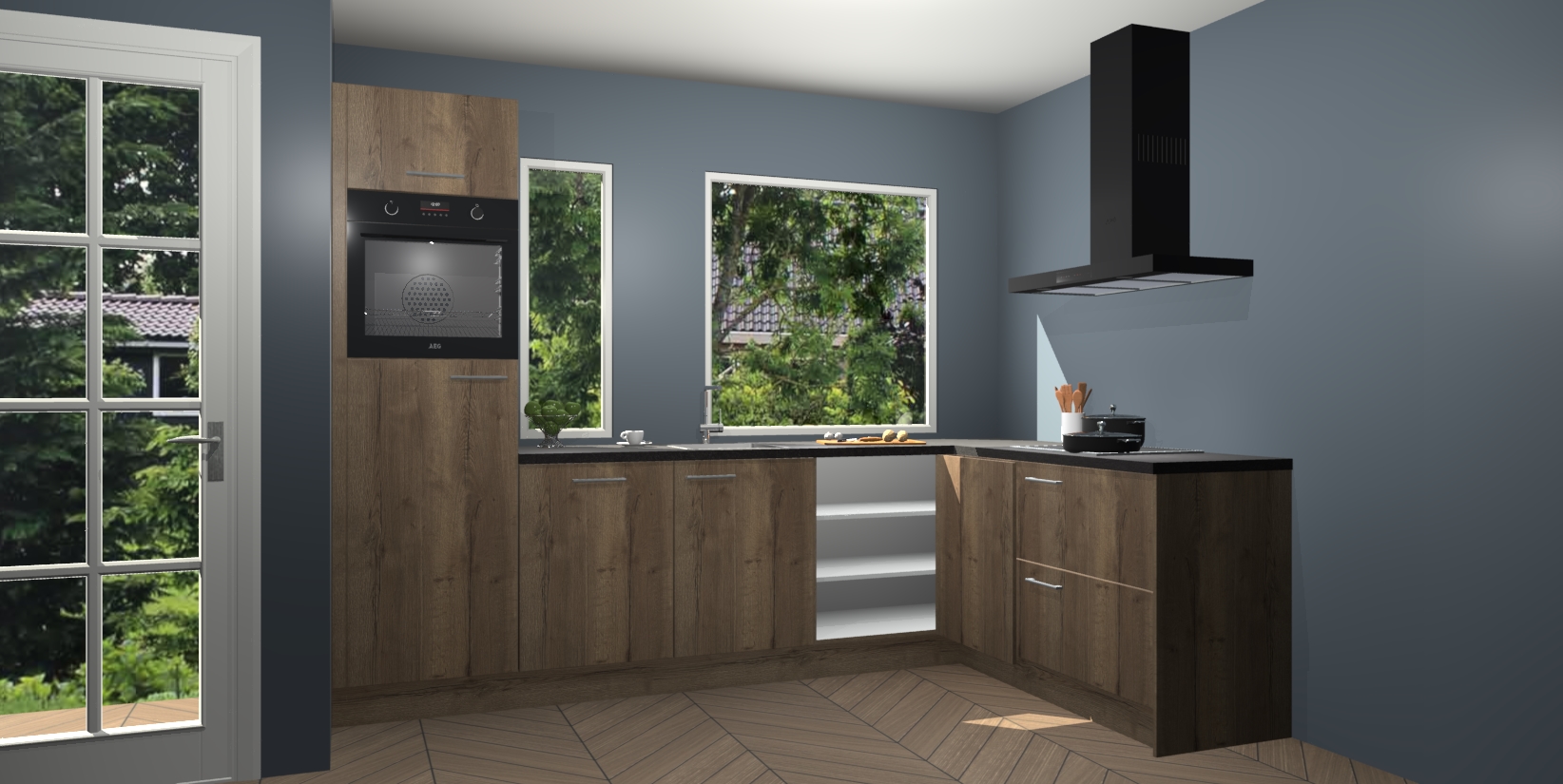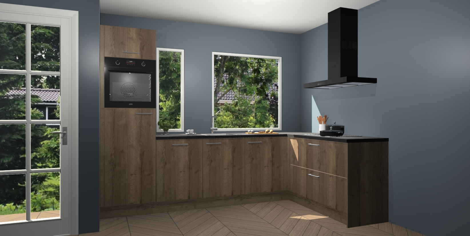 Deze complete keuken wordt geleverd met 5 inbouwapparaten: een oven, inductiekookplaat, afzuigkap, vaatwasser en koelkast.  De toestellen kunnen na bestelling ook gemakkelijk worden opgewaardeerd naar AEG. Bovendien is elke deur in deze keuken voorzien van handige softclose technologie voor eenvoudig gebruik! Als een leuke toevoeging zit in deze keuken ook een carrousel, zo hoef je niet meer de hoek in duiken om iets te pakken.