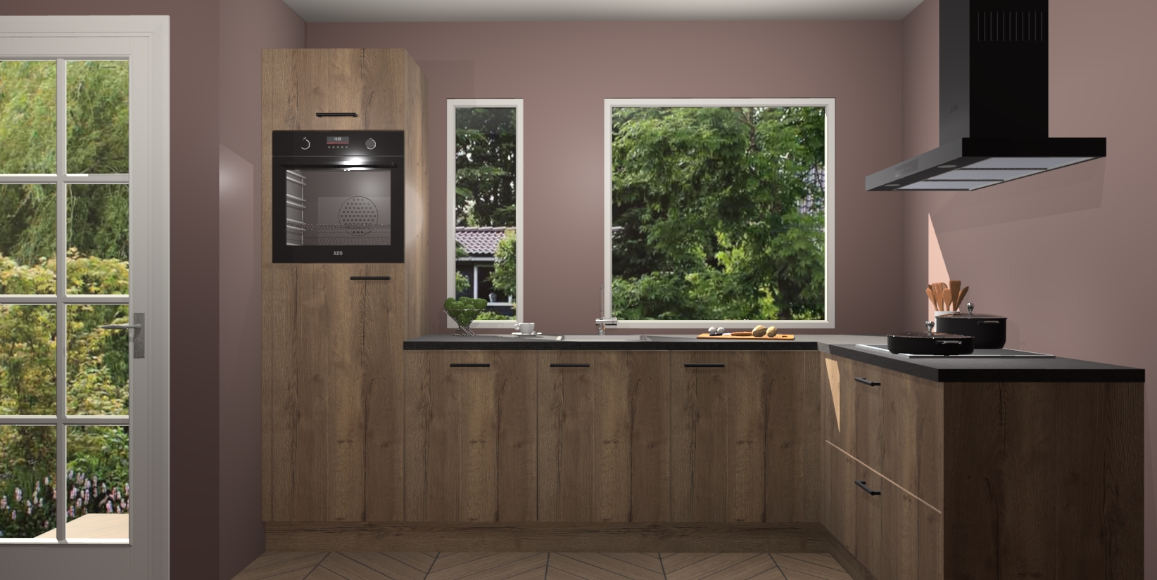 Deze complete keuken wordt geleverd met 5 inbouwapparaten: een oven, inductiekookplaat, afzuigkap, vaatwasser en koelkast. De toestellen kunnen na bestelling ook gemakkelijk worden opgewaardeerd naar AEG. Bovendien is elke deur in deze keuken voorzien van handige softclose technologie voor eenvoudig gebruik! Als een leuke toevoeging zit in deze keuken ook een carrousel, zo hoef je niet meer de hoek in duiken om iets te pakken.