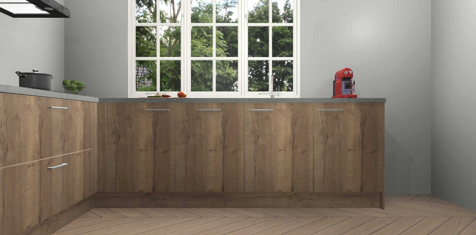 Welkom in de nieuwe wereld van een moderne keuken: de Chocolade Eiken keuken Casablanca! Met dit innovatieve keukendesign haalt u de natuur naar binnen. Neem plaats aan uw hout-look keuken en voel u verbonden met de prachtige Chocolade Eiken kleur. Zeer gebruiksvriendelijk, ervaring door prettige materialen en kleur die perfect aansluiten bij uw sfeerkeuze in huis.