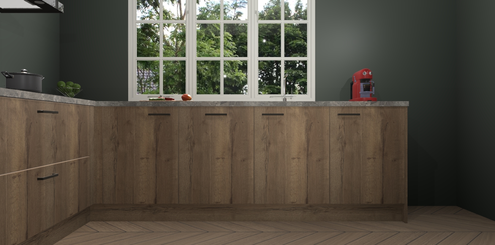 Welkom in de nieuwe wereld van een moderne keuken: de Chocolade Eiken keuken Casablanca! Met dit innovatieve keukendesign haalt u de natuur naar binnen. Neem plaats aan uw hout-look keuken en voel u verbonden met de prachtige Chocolade Eiken kleur. Zeer gebruiksvriendelijk, ervaring door prettige materialen en kleur die perfect aansluiten bij uw sfeerkeuze in huis.