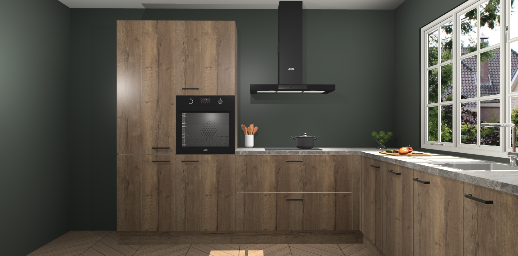 De keuken heeft veel opbergruimte, waardoor u alle ingrediënten gemakkelijk bereikbaar hebt staan. En daarnaast bevat deze volledig uitgeruste keuken ook 5 ingebouwde apparaten: een oven, inductiekookplaat, afzuigkap, vaatwasser en koelkast. Deze zijn heel eenvoudig na bestellen te upgraden naar AEG als u dit wilt. Bovendien zijn de softclose-kastdeuren ideaal; geef ze gewoon even een tikje en ze sluiten automatisch met geruisloze precisie.