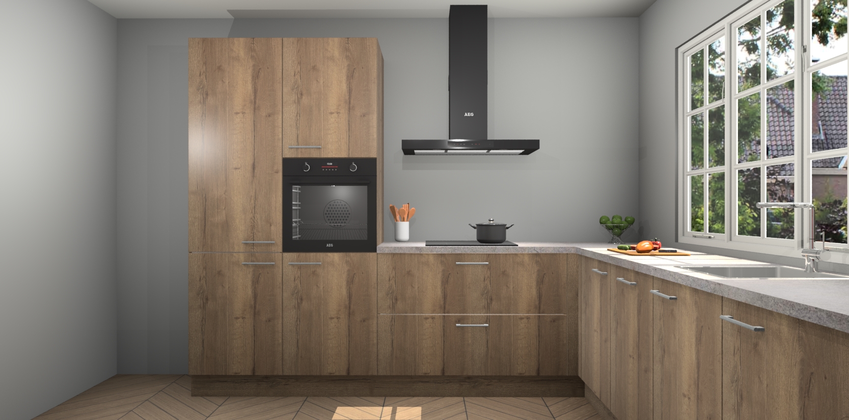 De keuken heeft veel opbergruimte, waardoor u alle ingrediënten gemakkelijk bereikbaar hebt staan. En daarnaast bevat deze volledig uitgeruste keuken ook 5 ingebouwde apparaten: een oven, inductiekookplaat, afzuigkap, vaatwasser en koelkast. Deze zijn heel eenvoudig na bestellen te upgraden naar AEG als u dit wilt. Bovendien zijn de softclose-kastdeuren ideaal; geef ze gewoon even een tikje en ze sluiten automatisch met geruisloze precisie.