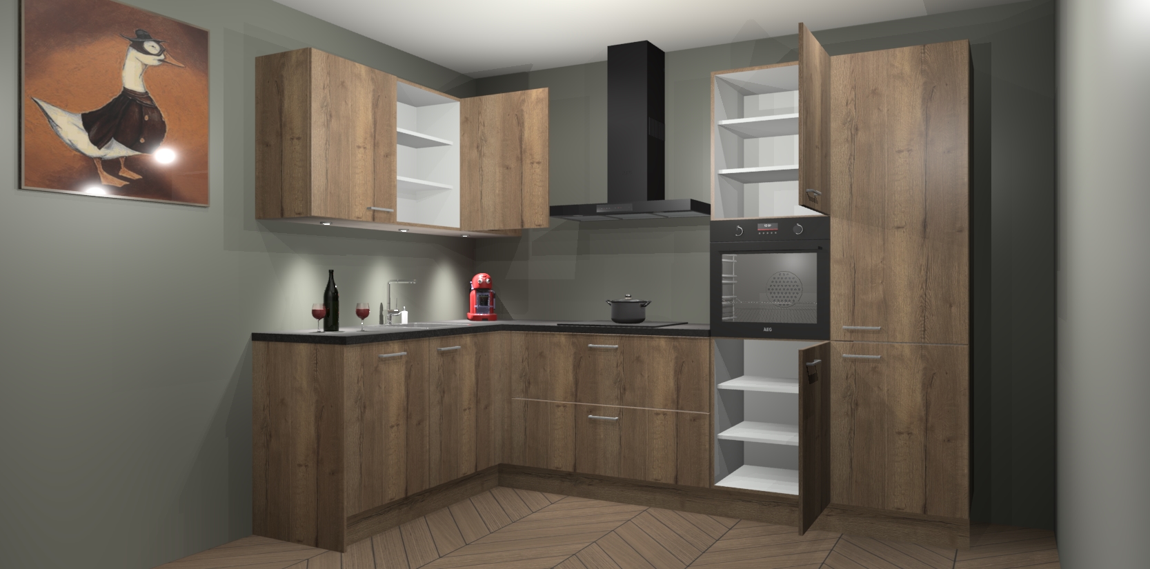 De Chocolade Eiken keuken Cognac gaat alleen maar om de beste keukenervaring. Kies gewoon de beste apparatuur en ongeëvenaarde Duitse constructie die u thuis wilt hebben en verander uw huiskamer hartelijkheid meteen in professionaliteit. Laat de toon weten dat u gemakkelijk kan genieten van alle luxe die u verdiend? Bestel nu de Chocolade Eiken keuken Cognac voor bij u thuis!