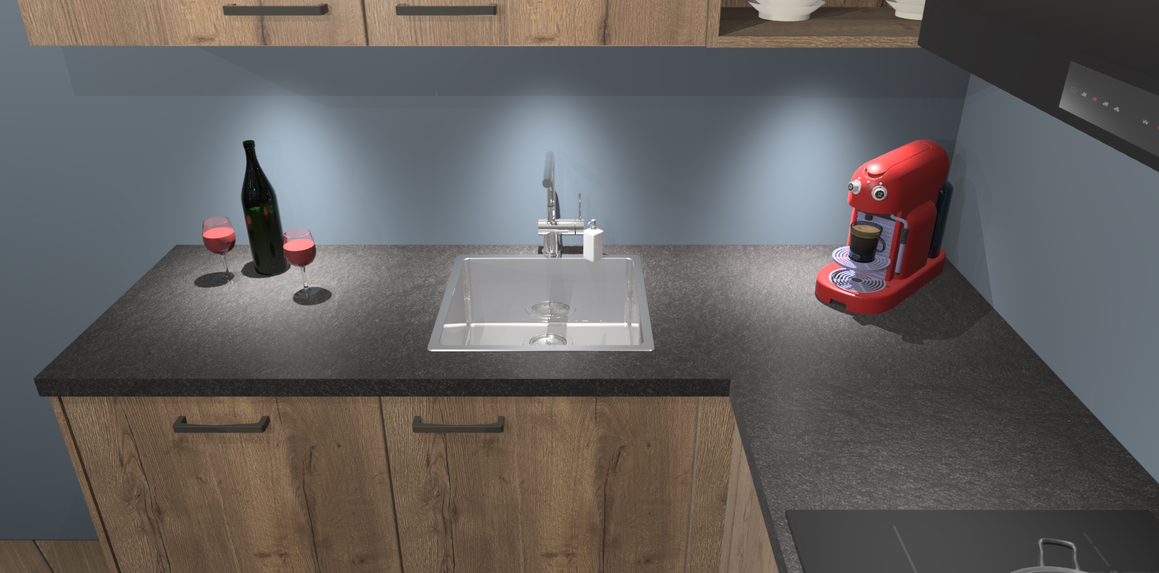 - Bij een hoekwerkblad zijn de hoeken in gevreesd en op maat gemaakt