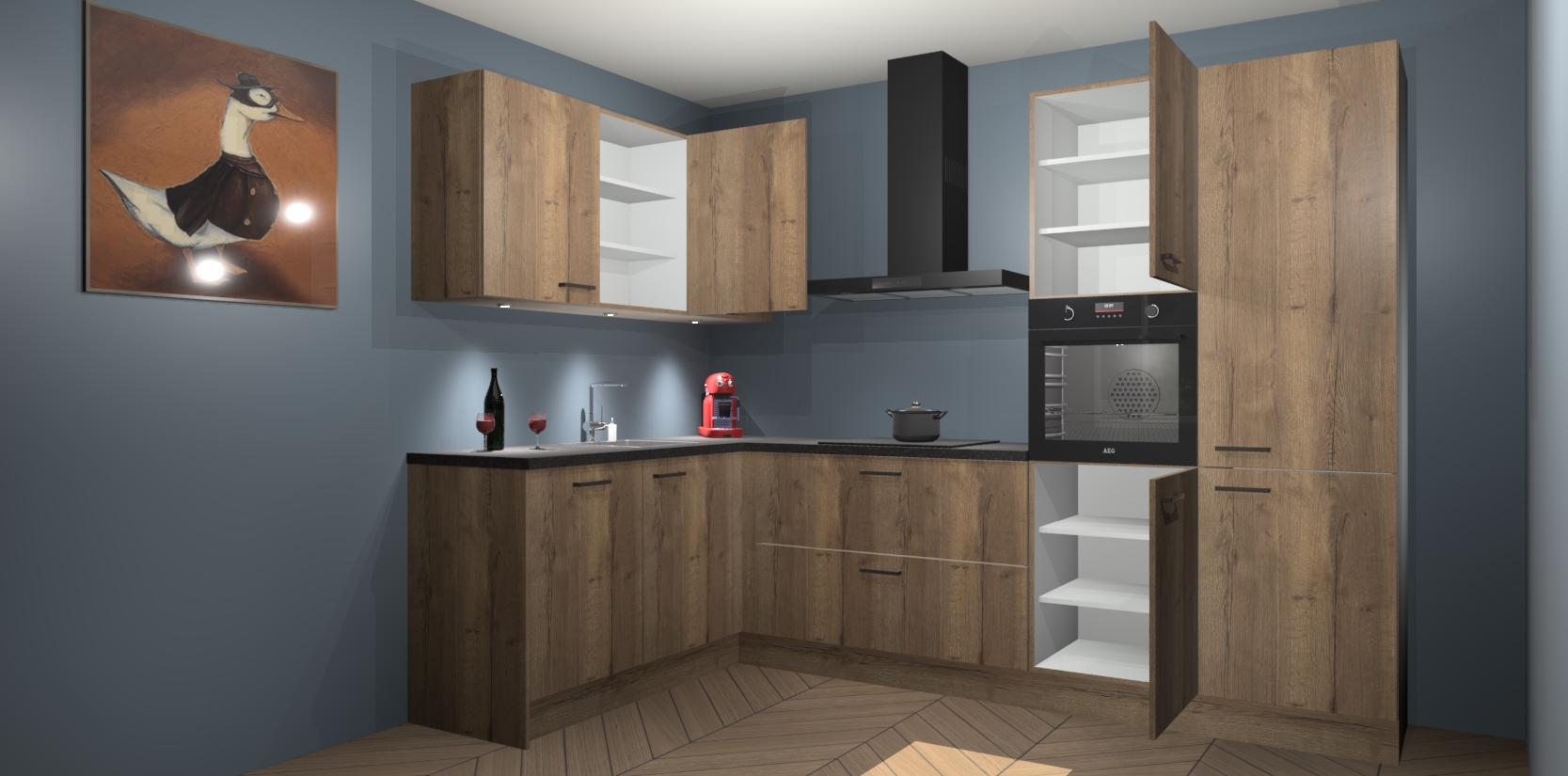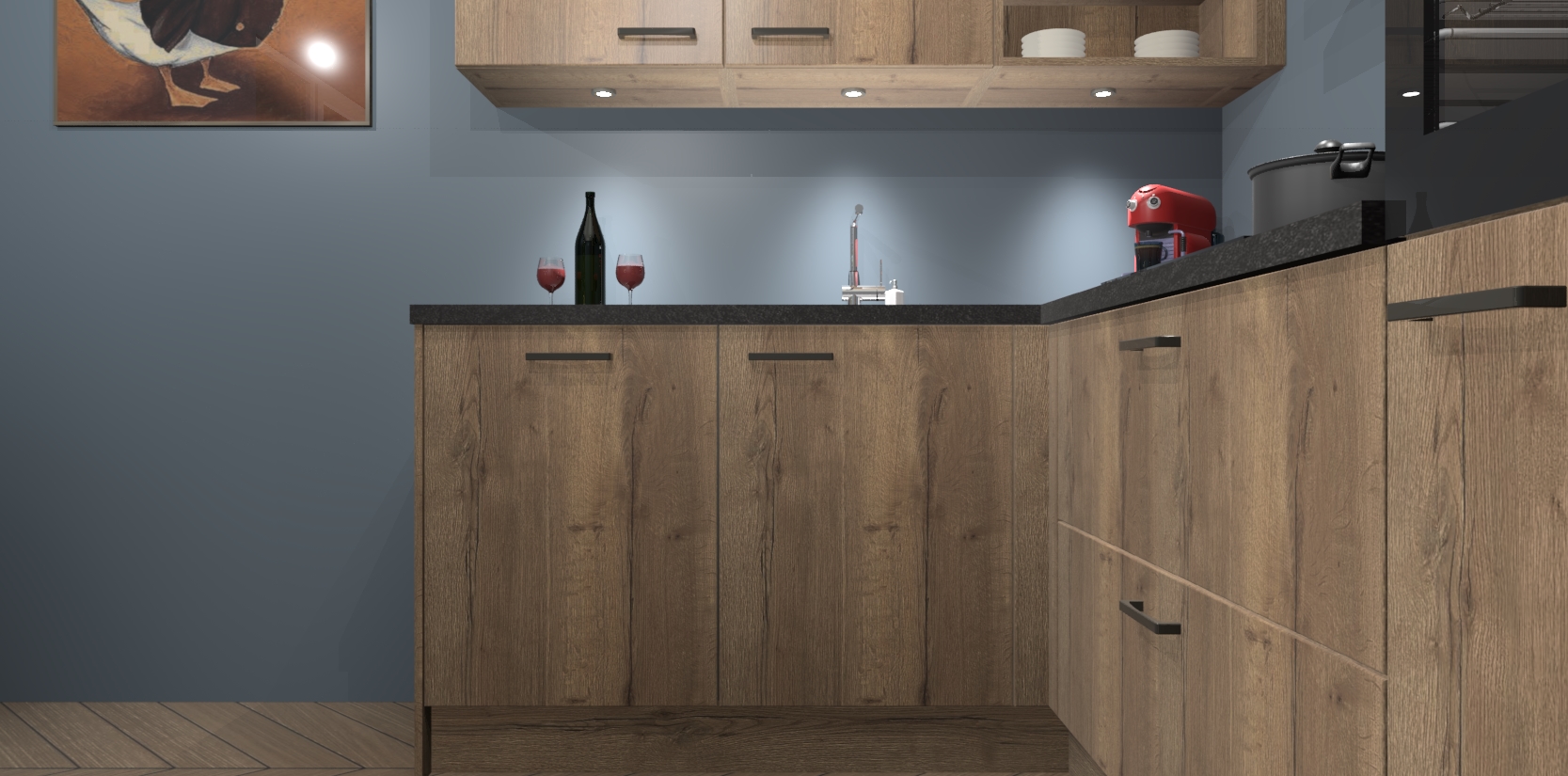 De Chocolade Eiken keuken Cognac gaat alleen maar om de beste keukenervaring. Kies gewoon de beste apparatuur en ongeëvenaarde Duitse constructie die u thuis wilt hebben en verander uw huiskamer hartelijkheid meteen in professionaliteit. Laat de toon weten dat u gemakkelijk kan genieten van alle luxe die u verdiend? Bestel nu de Chocolade Eiken keuken Cognac voor bij u thuis!