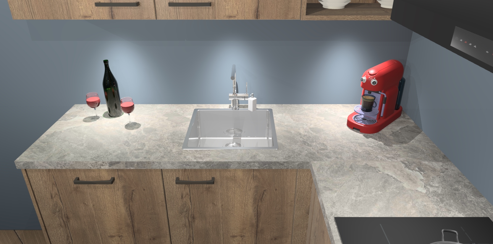 - Bij een hoekwerkblad zijn de hoeken in gevreesd en op maat gemaakt