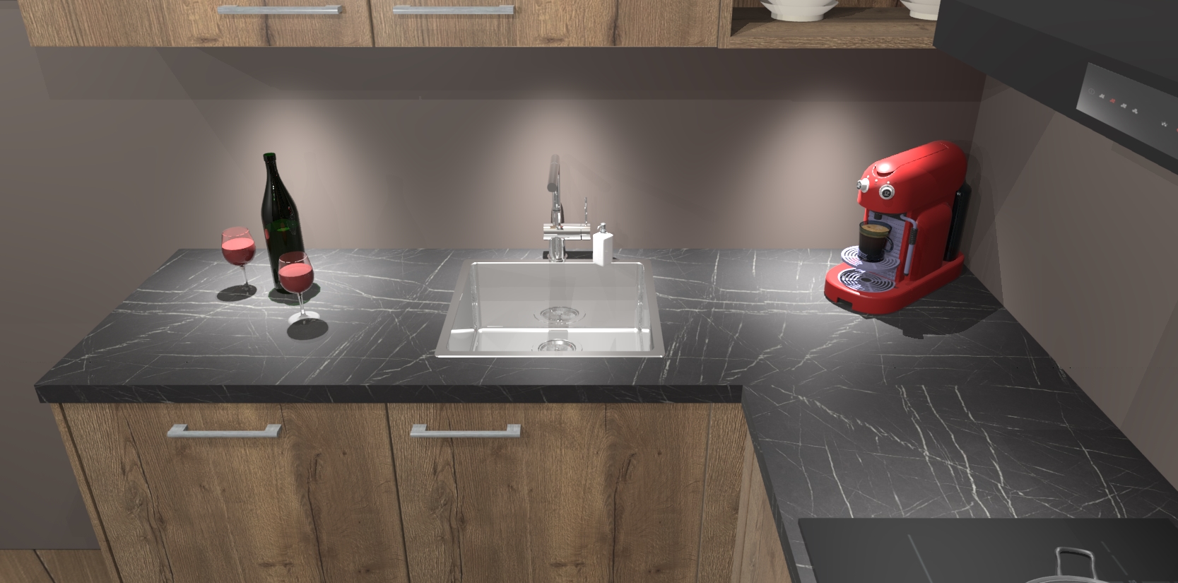 - Bij een hoekwerkblad zijn de hoeken in gevreesd en op maat gemaakt