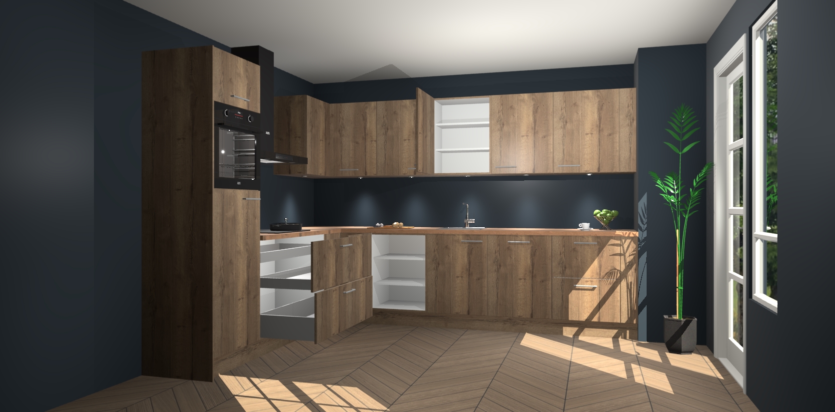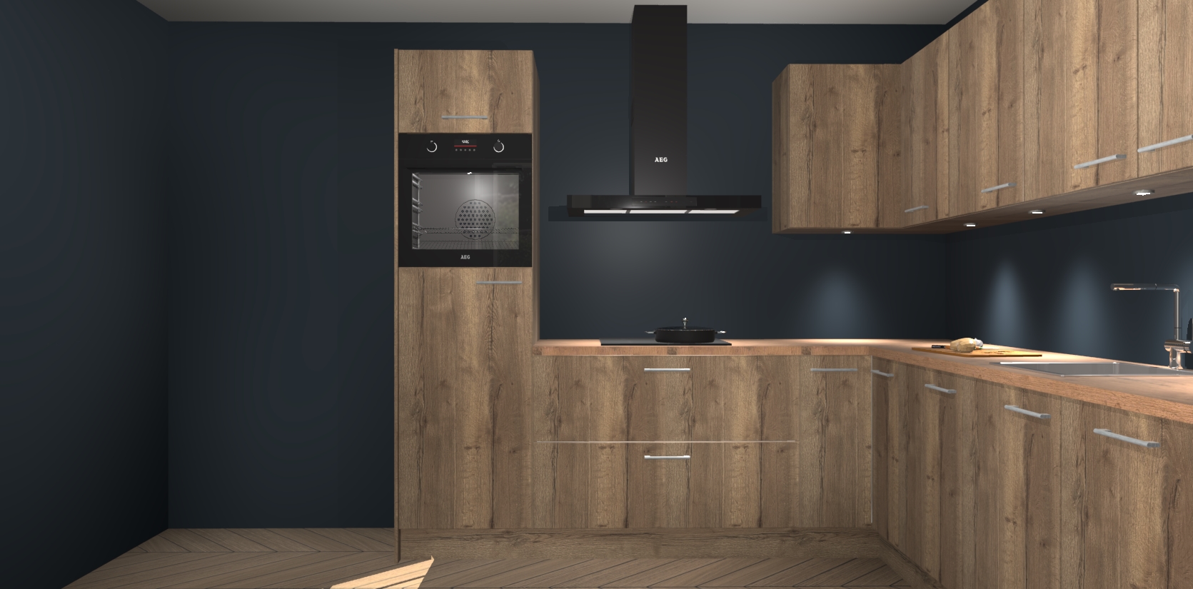 De Chocolade Eiken keuken Debar is uitgerust met vijf inbouwapparaten die elke kooktaak handig en efficiënt maken. Een oven, inductiekookplaat, afzuigkap, vaatwasser en koelkast zijn standaard, maar kunnen na bestelling eenvoudig worden geupgrade naar AEG. Profiteer vervolgens van de softclose deuren voor snelle toegang en geruisloze toegang.